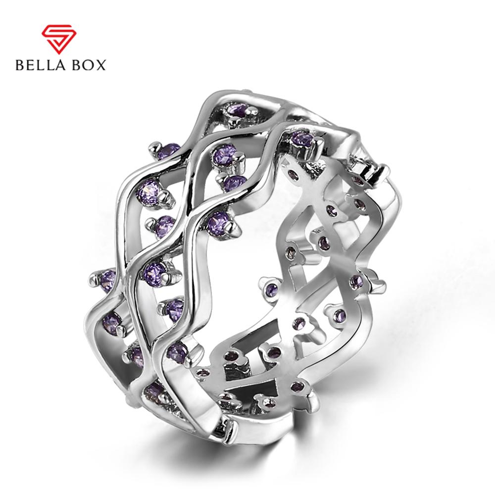 BELLA BOX Роскошные геометрические кольца с аметистом для женщин, свадебное обручальное полое кольцо, оптовая продажа ювелирных изделий, подарок — купить товар онлайн с бесплатной доставкой по всему миру!