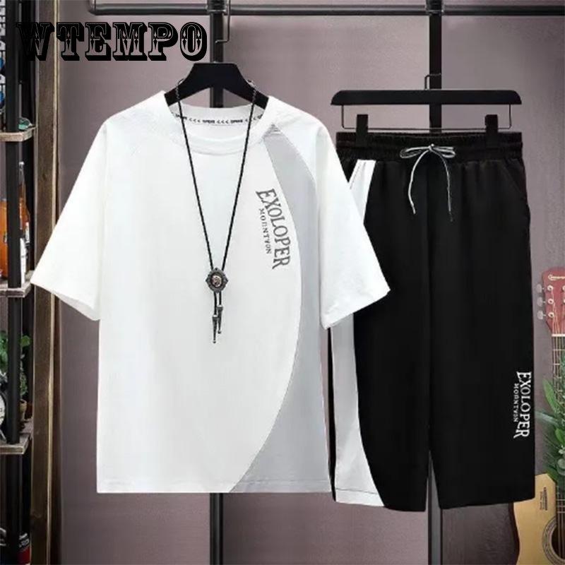 Летний костюм-футболка с короткими рукавами, мужской однотонный трендовый молодежный повседневный спортивный укороченный костюм из двух предметов — купить товар онлайн с бесплатной доставкой по всему миру!