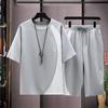 Летний костюм-футболка с короткими рукавами, мужской однотонный трендовый молодежный повседневный спортивный укороченный костюм из двух предметов