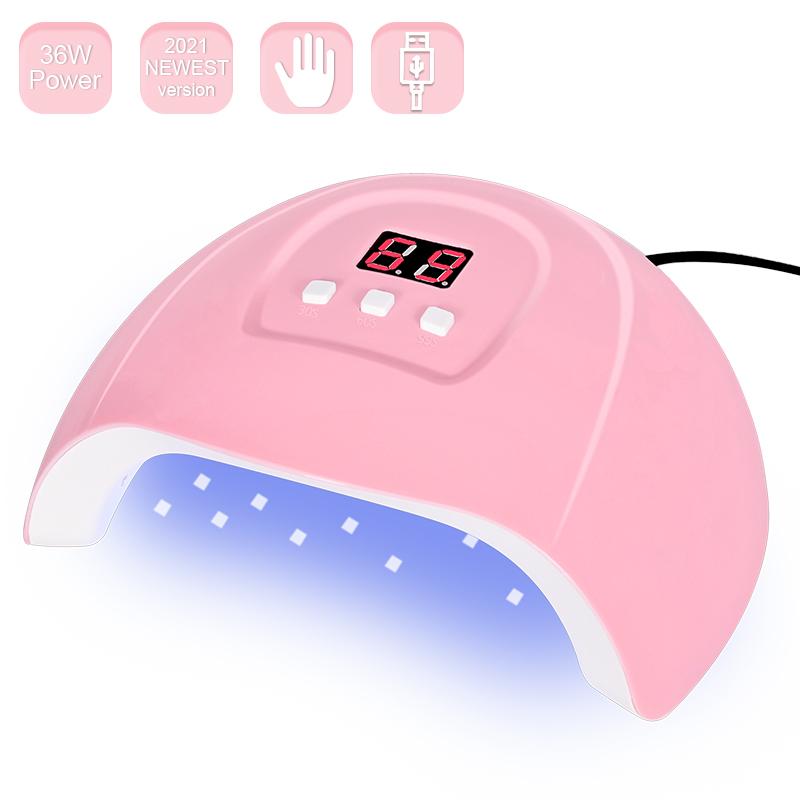 Портативная розовая машина для сушки ногтей 36 Вт, УФ-светодиодная лампа 30/60/90 s, таймер, USB-кабель для домашнего использования, сушилка для УФ-гель-лака для ногтей, светодиодная лампа для ногтей, инструмент