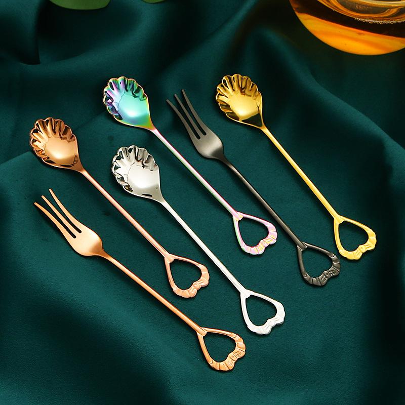 1 шт. вилка для торта и 1 шт. чайная ложка из нержавеющей стали креативная форма ракушки кофейные ложки ложка для смешивания напитков вилка для торта фруктовые десертные вилки
