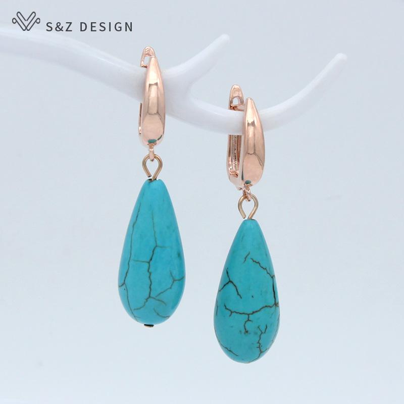 Модные темпераментные висячие серьги цвета розового золота с каплями воды из синтетической бирюзы для женщин и девочек, элегантные свадебные украшения, подарок — купить товар онлайн с бесплатной доставкой по всему миру!