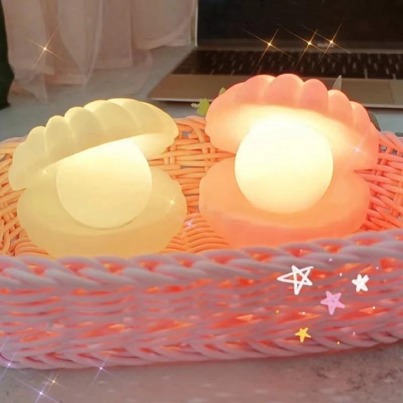 Светодиодный ночник в виде ракушки, декоративные светильники Kawaii, декор комнаты, игрушки для детей, мультяшные светильники для спальни, праздничные подарки на день рождения