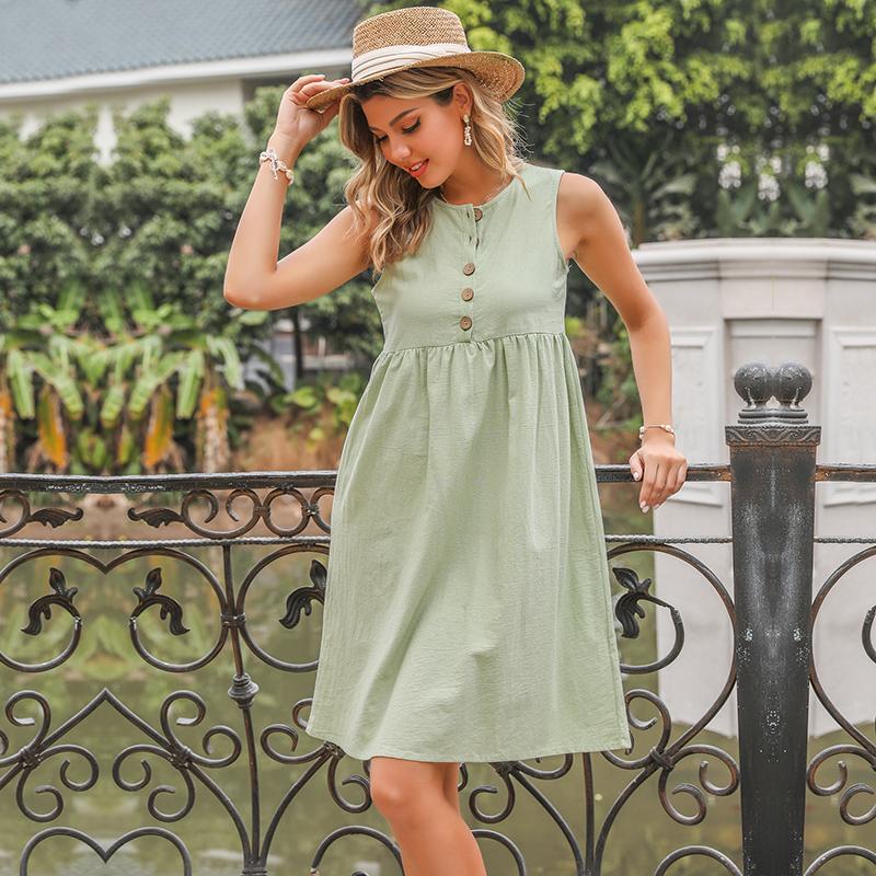 YYFS женские модные летние весенние однотонные повседневные платья без рукавов с круглым вырезом и высокой талией — купить товар онлайн с бесплатной доставкой по всему миру!