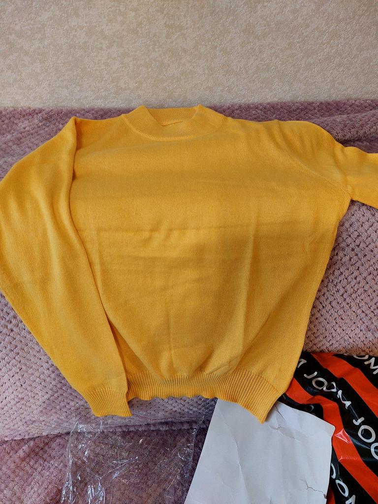 Всё пришло в одной посылке, 4 товара. Джуму огромное спасибо, вложились в заявленные сроки. Мужу покупала х/б трусы к Дню рождения (смешно, как в добрые советские времена) ему очень понравились. Себе - свитер (типа кошемировый), но наверное вискоза, за 20 то евро. Но к телу супер, 3х брала на 52 розмер, чуть в облипон. Брюки, ещё себе с утеплителем брала, коротковатые чуть-чуть, 3х, но в ботинки - в самый раз.