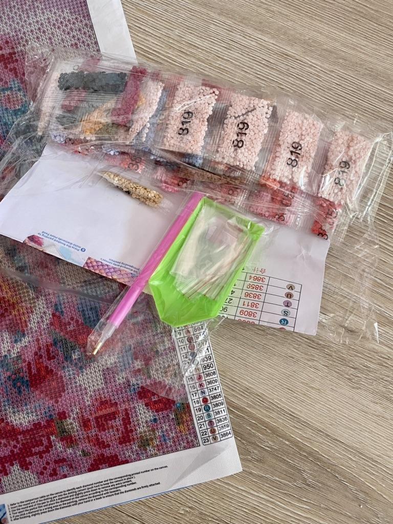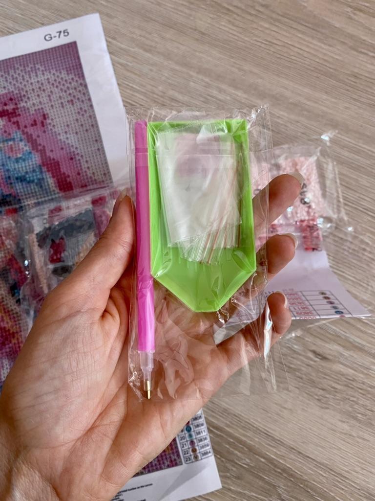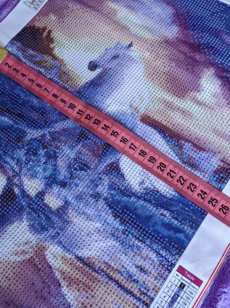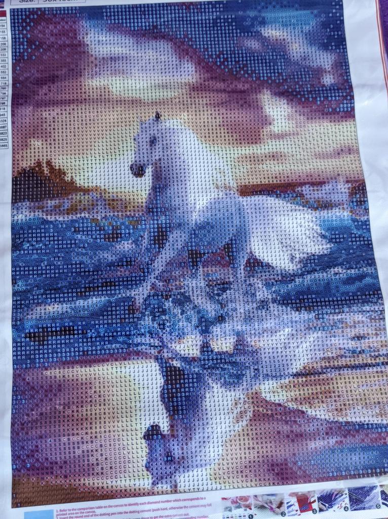 Алмазная мозаика. Как сказала моя племянница, это «морской закатный конь».😁🐎 Вообще, очень атмосферная картинка. Даже не собранный холст хочется разглядывать… Мозаика очень хорошего размера, 30*40 см. Конечно, размер указан с полями, сама картинка — примерно 24,7*34,7 см. Яркая, красочная, с завораживающим сюжетом: по морской отмели в лучах закатного солнца скачет красивый белый конь… Пришла картинка в почтовом пакете, холст был сложен в рулончик. Внутри — пакетики со стразами (22 цвета) и стандартный набор инструментов (стилус для захвата страз, лоточек, восковый квадратик). Холст без заломов, стразы круглой формы, не слипшиеся. По этой ссылочке продавец предлагает на выбор аж 20 вариантов сюжетов. Можно выбрать размер поменьше.
