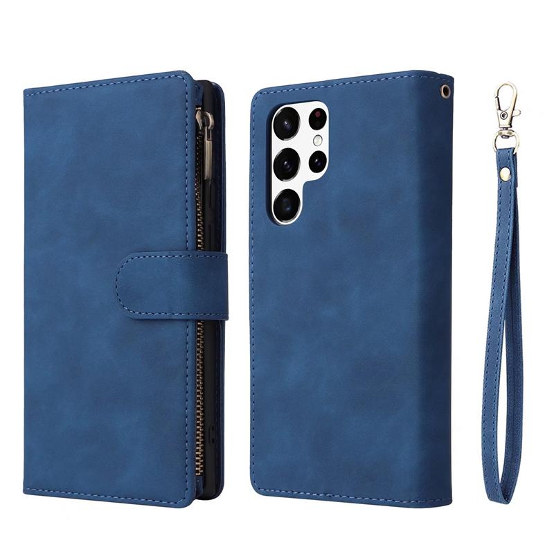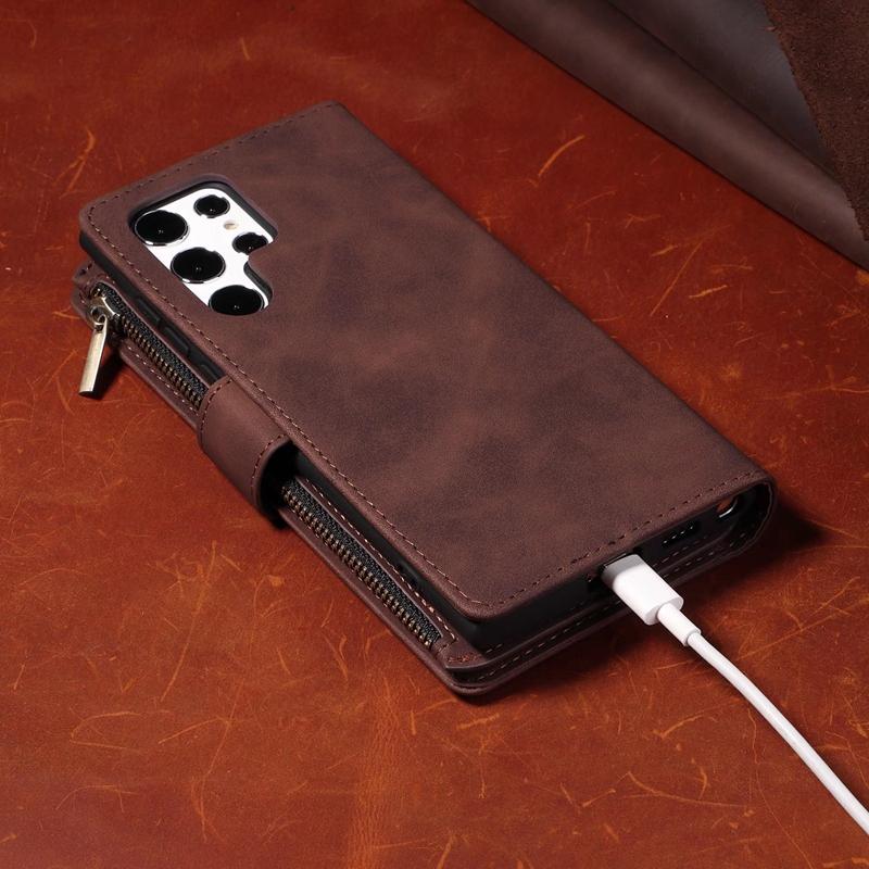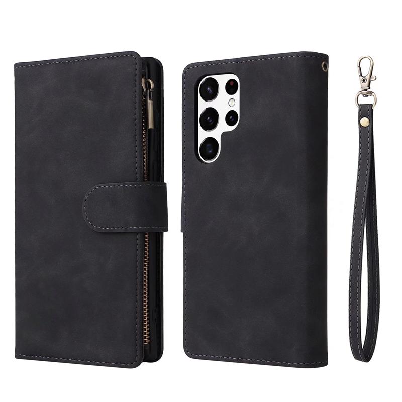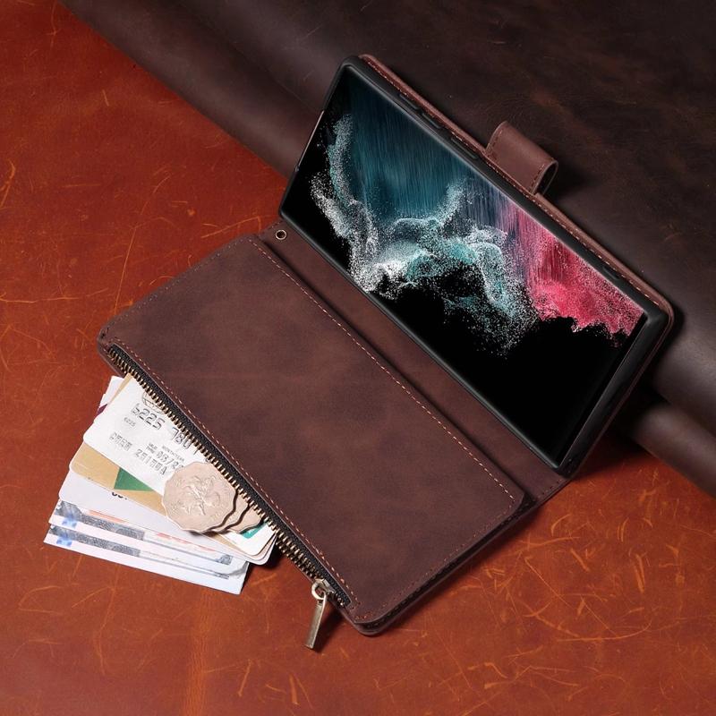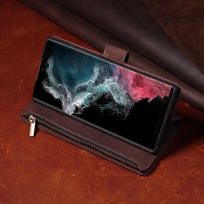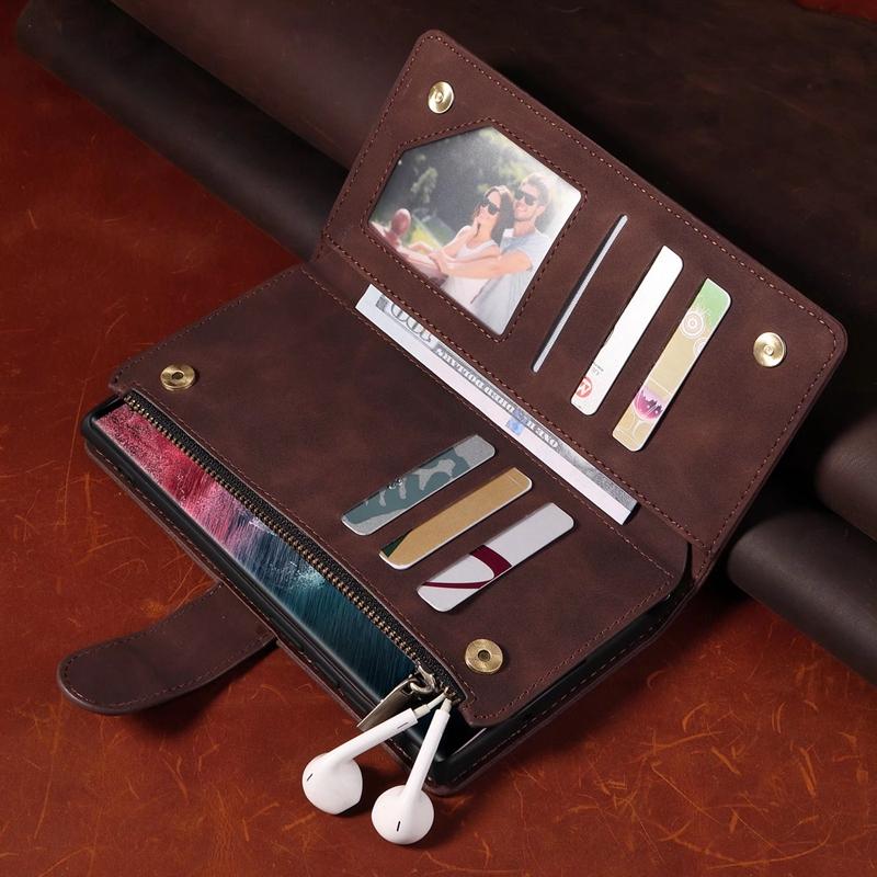Держатель-подставка и сумка для мобильного телефона с 9 карманами для карт, чехол для iPhone Samsung Huawei Xiaomi Google OnePlus Матовый кожаный откидной чехол в стиле ретро с браслетом
