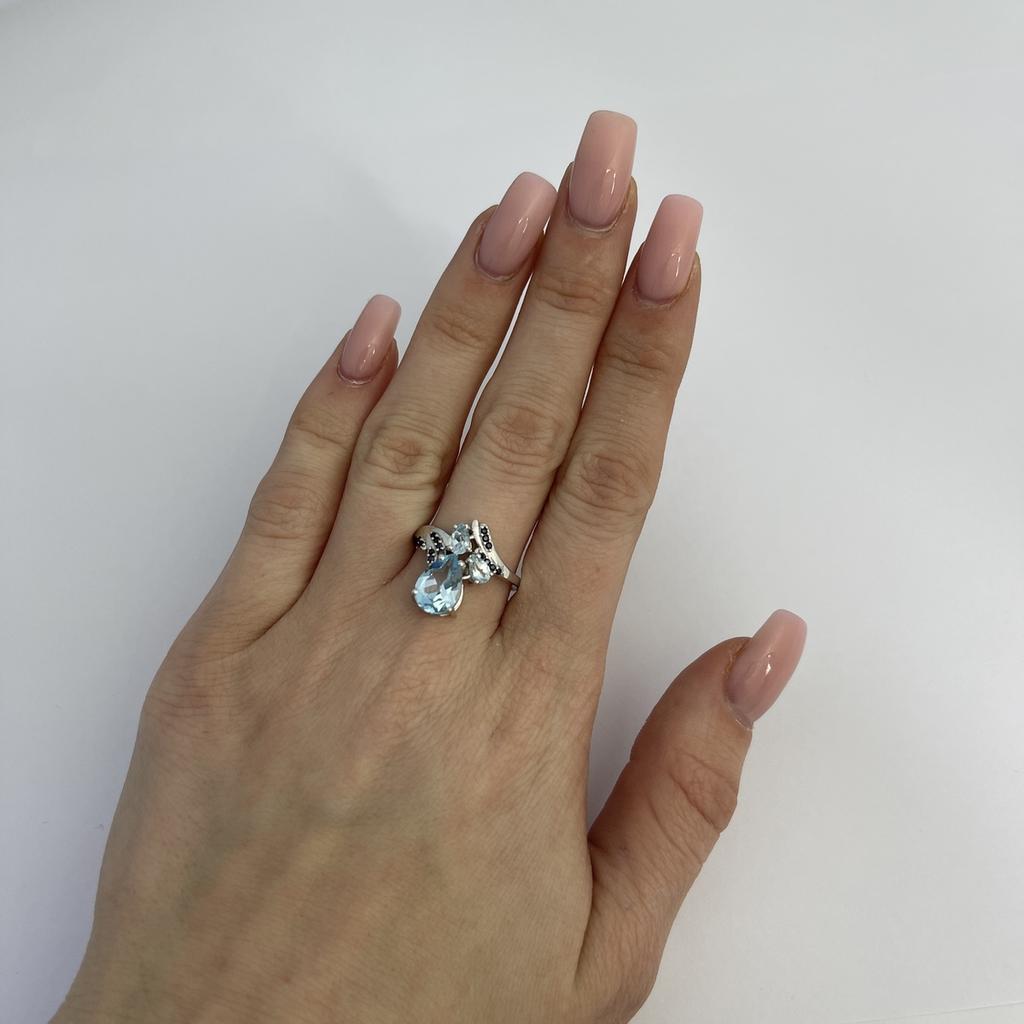 серебряное кольцо с натуральным топазом 2.778ct, шпинелью, вес изделия 3,13 гр