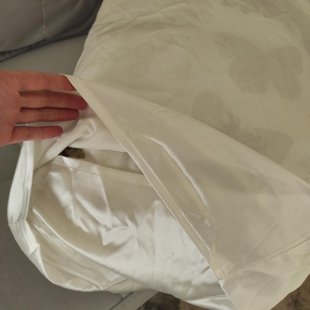 Хорошая наволочка, аккуратные швы, материал без повреждения. Не могу сказать что 100% шелк. Взяла белую, но она просвечивается.