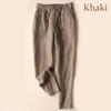 Женские однотонные хлопковые льняные эластичные брюки с высокой талией, повседневные элегантные свободные брюки для вечеринок — купить товар онлайн с бесплатной доставкой по всему миру!