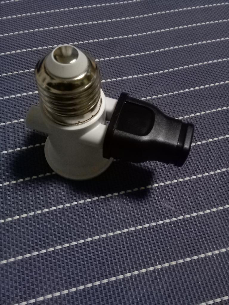 Патрон цокольный Е27 для лампы с двумя "розетками" впридачу. Очень удобно в местах, не оборудованных стационарными розетками 👍