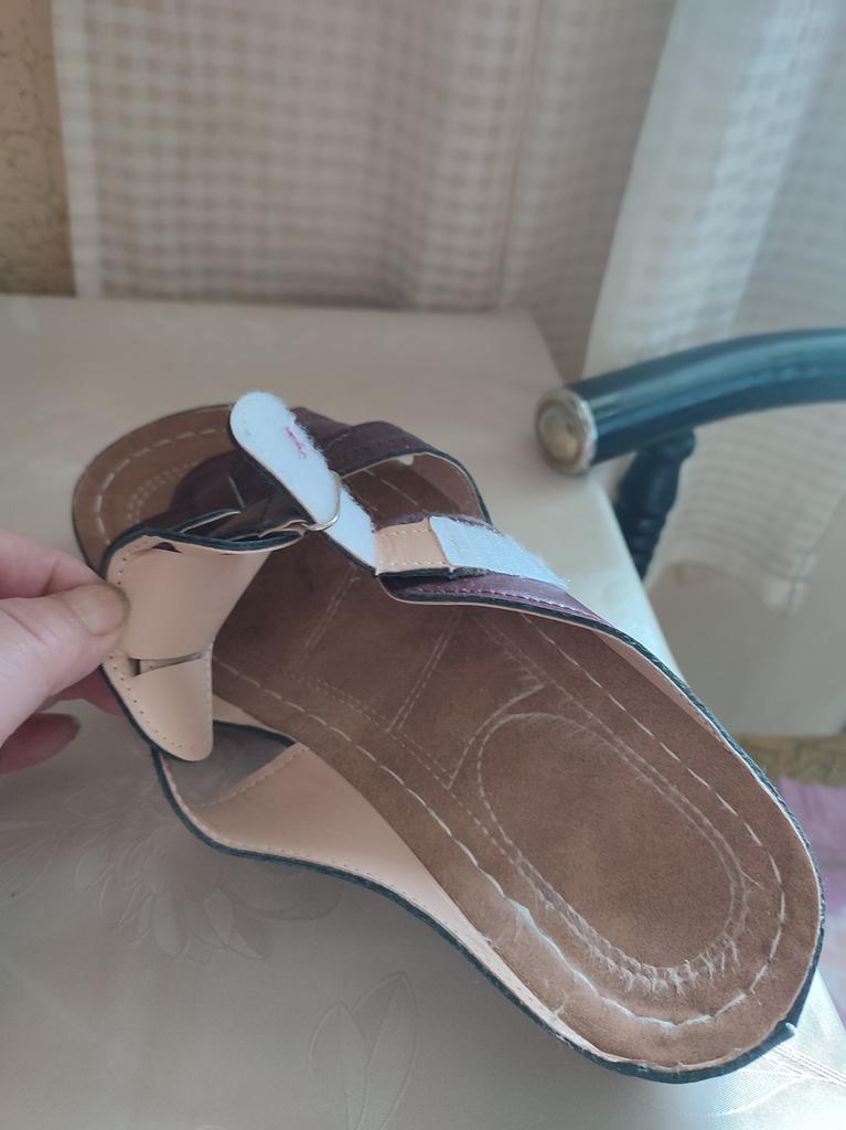 Воняют так, что даже глаза заслезились, выставила в террасу, надеюсь выветрится. Сами шлепки на вид симпатичные, пошиты аккуратно, только подошва пластиковая, как пупсы голыши были в советском союзе. В подъёме нормально, а вот в пальцах немного узкие, но думаю это хорошо, нога не будет проскальзывать. Посмотрим на сколько хватит в носке. Пришли в пакете, размер указан только на пакете, на самих тапках нигде не нашла.