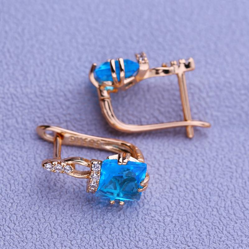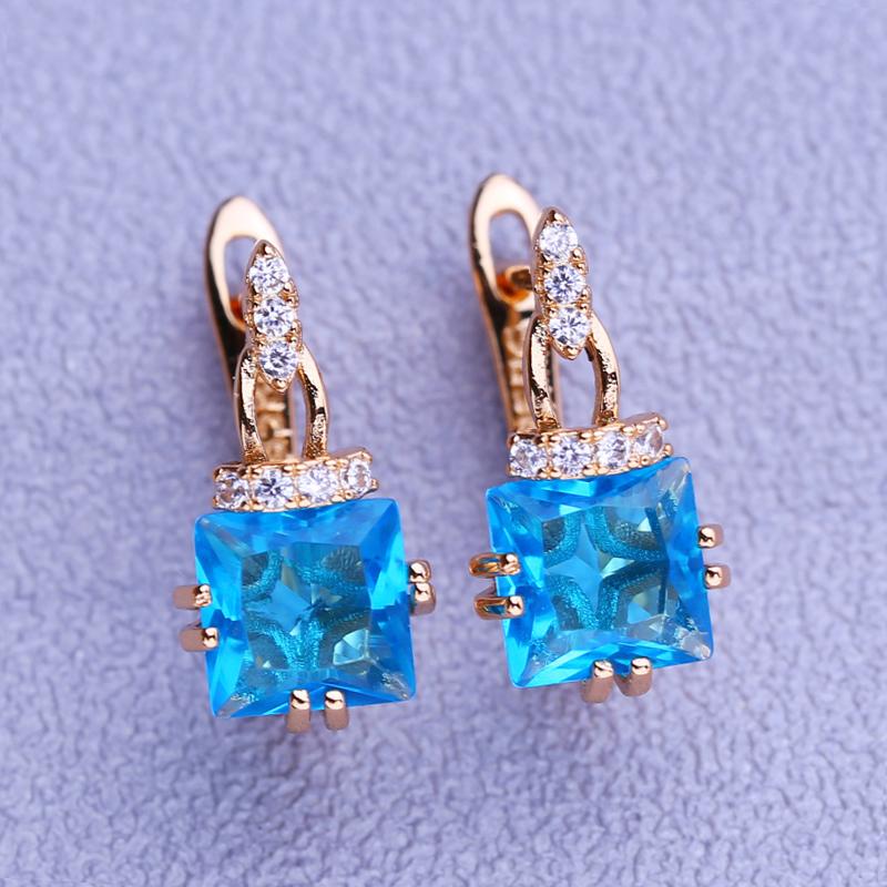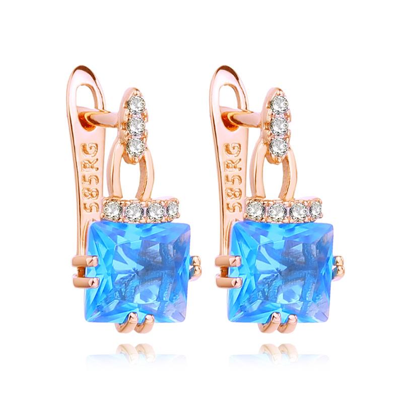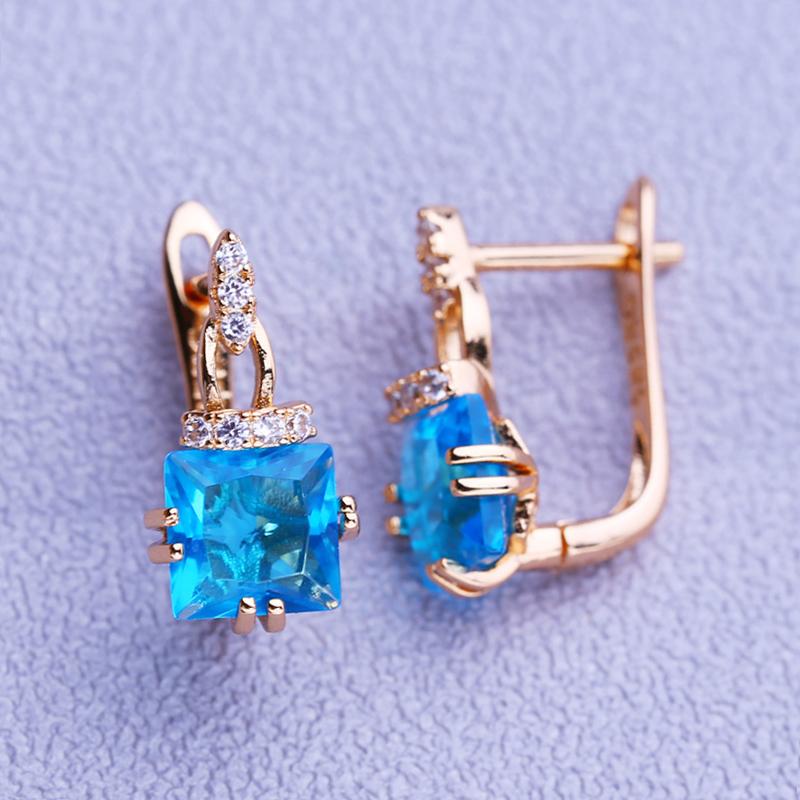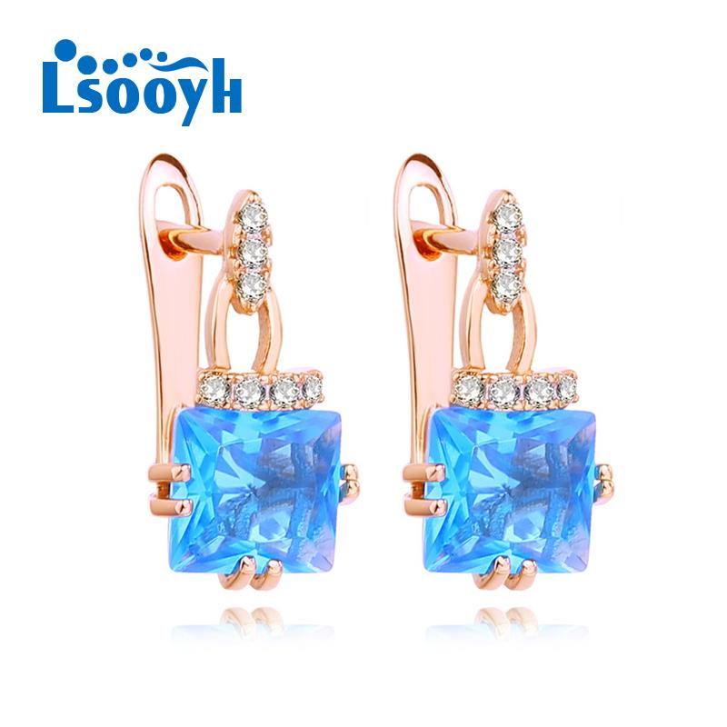 LSOOYH серьги с перьями цвета розового золота, модные серьги для женщин, полые синие серьги-гвоздики с кубическим цирконием, ювелирные изделия