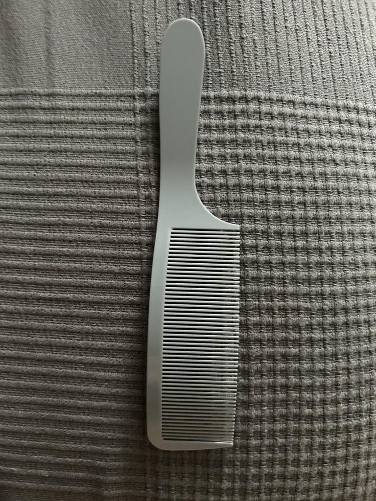 Изогнутая расчёска для стрижки Легкая, пластиковая Выполнена без нареканий Удобнее при стрижке чем прямая расчёска, как раз по форме головы Брала для свекрови, она довольна