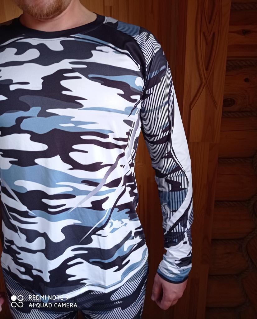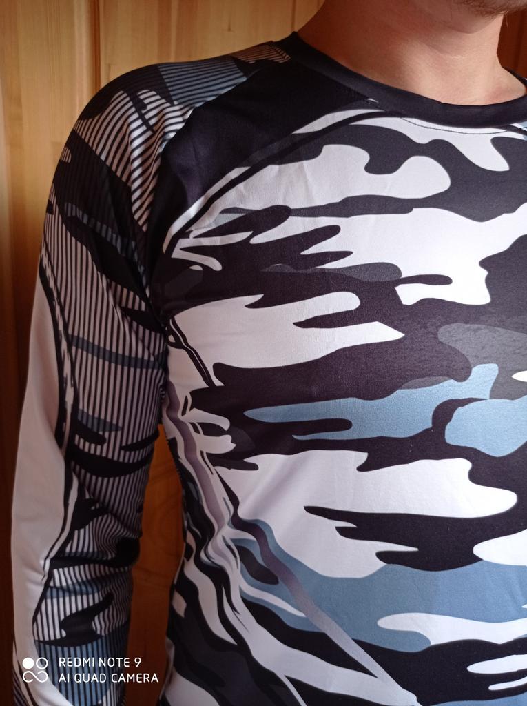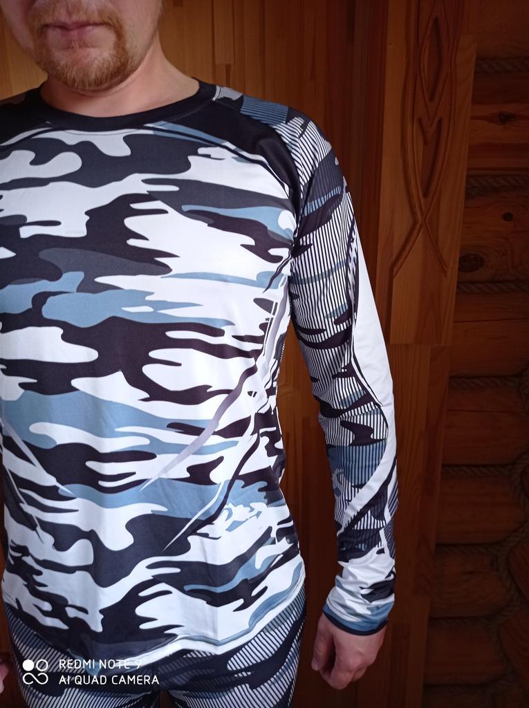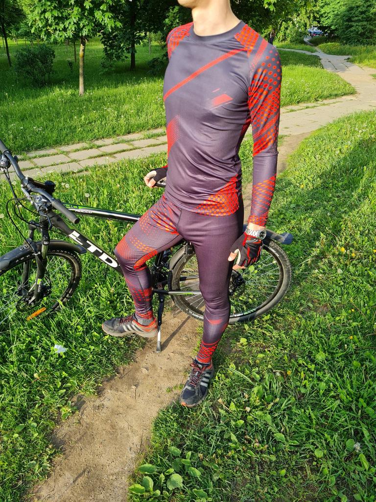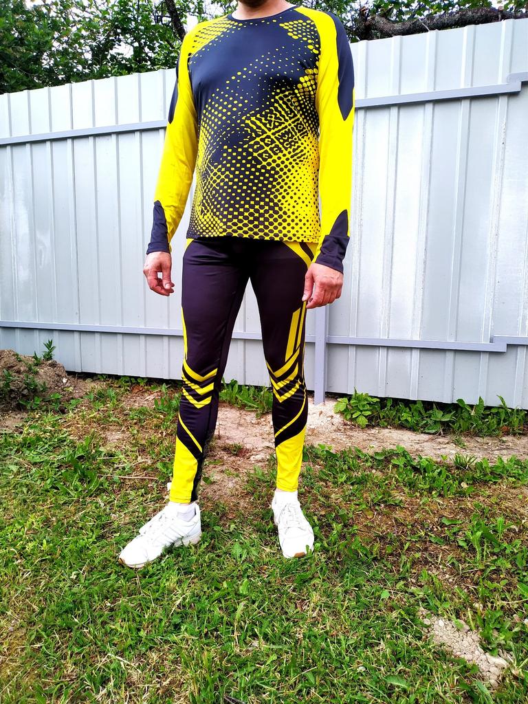 Спортивный мужской костюм На российский 48 взяли 4XL, сел хорошо, как раз! Очень хорошо тянется. Быстросохнущая приятная к телу ткань. Продавец утверждает, что рисунок не выцветает. Возможно. Посмотрим 😊 Подобные костюмы носят под шорты. Он будет особенно удобен во время пробежки 👍 Материал - 92% полиэстер, 8% спандекс. Швы ровные, нитки не торчат. Изделие фабричное. Продавец предлагает большое количество различных расцветок костюмов. Доставлен в почтовое отделение за 1,5 месяца живым треком в сборной посылке. Товар и продавца рекомендую 👍