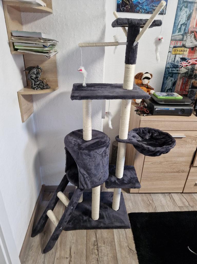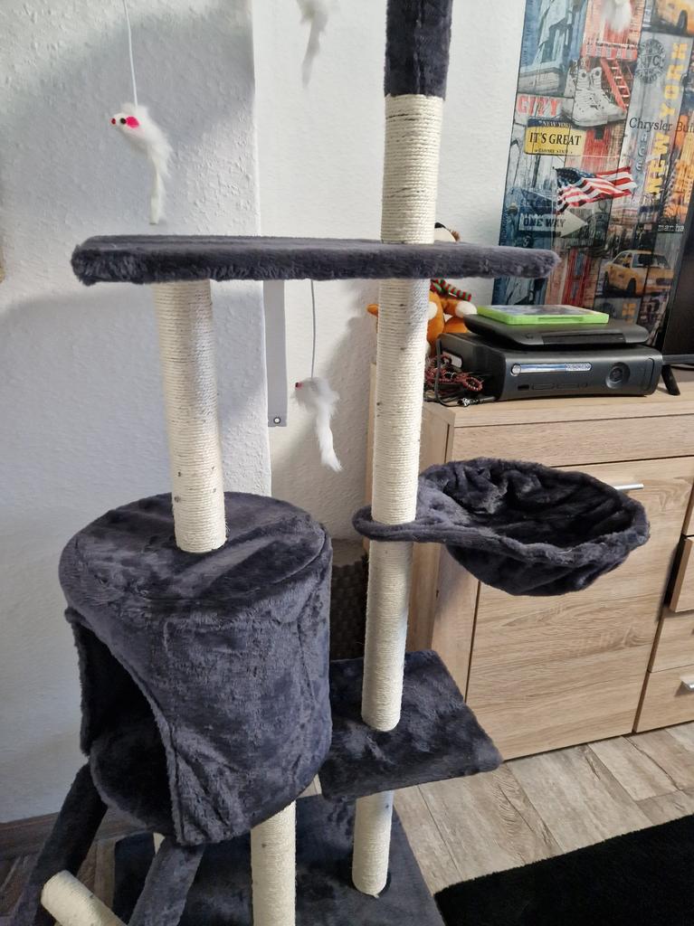 JIPSY Серое кошачье дерево 79 x 34 x 138 см - 3 платформы, 1 жердочка, 1 конура, 1 лестница, когтеточки — купить товар онлайн с бесплатной доставкой по всему миру!