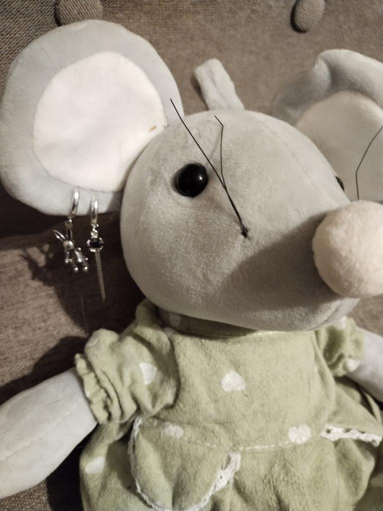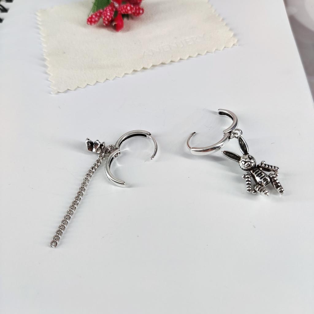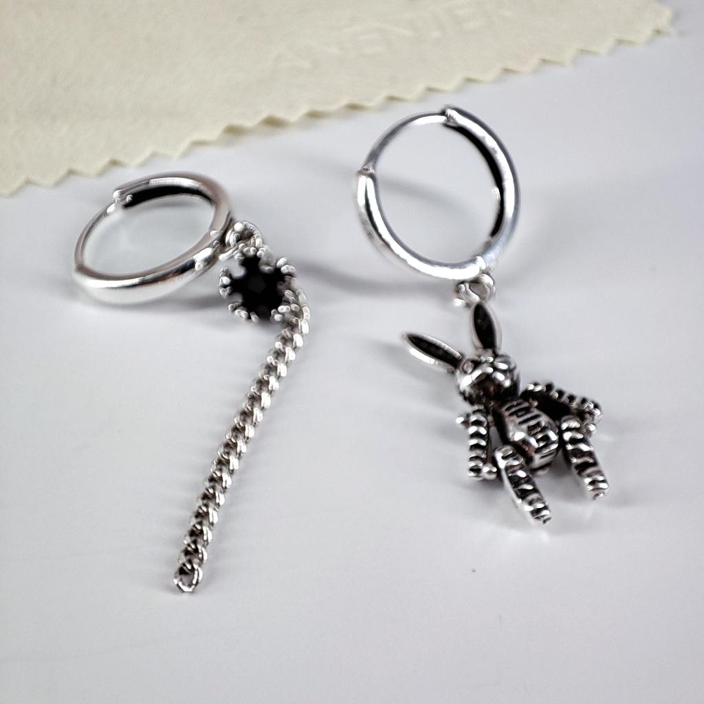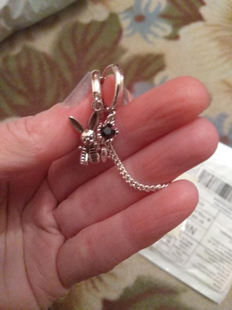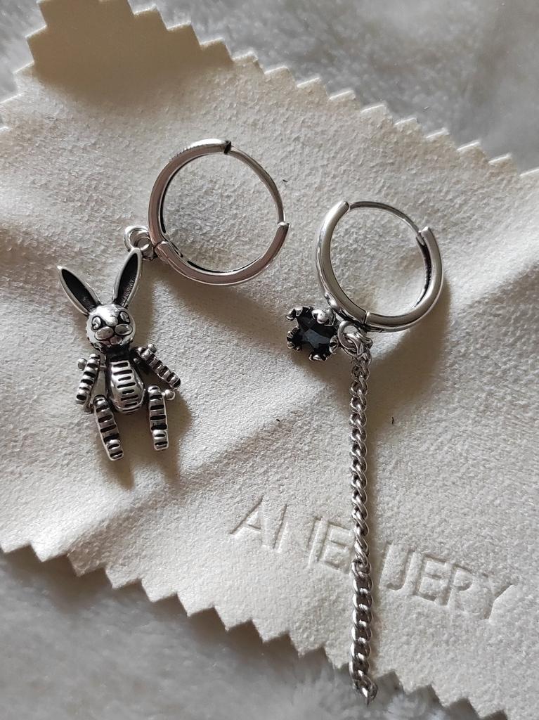Серьги. Доставка 15.11-13.12.22 в РБ. Стоят пробы S925, если это важно. Серьги разные одна с черной шпинелью а вторая с кроликом 2023 год Черного Водяного Кролика или Кота, и в Новый год Тигр превращается в домашнего Котика. Упакованы в зип-пакетик, также в посылке была найдена отдельно сунутая салфетка для протирки. Норм качество. Джум объединил мне три заказа в один: этот и домашние штаны, капроновое боди /без застёжки низа/.