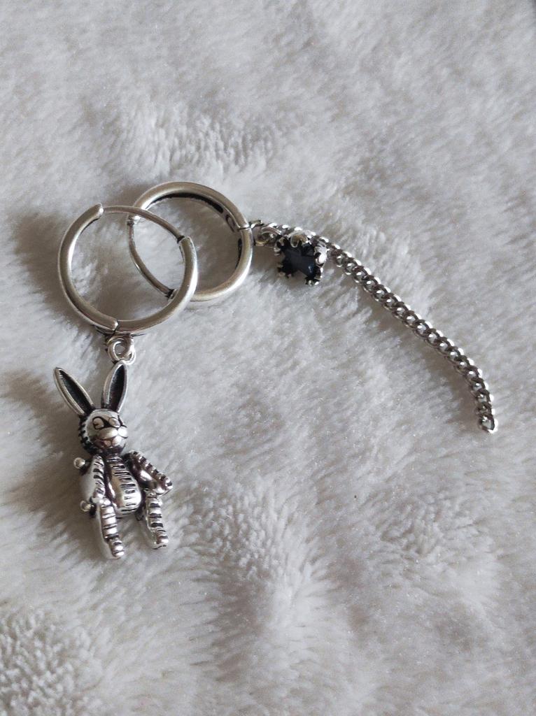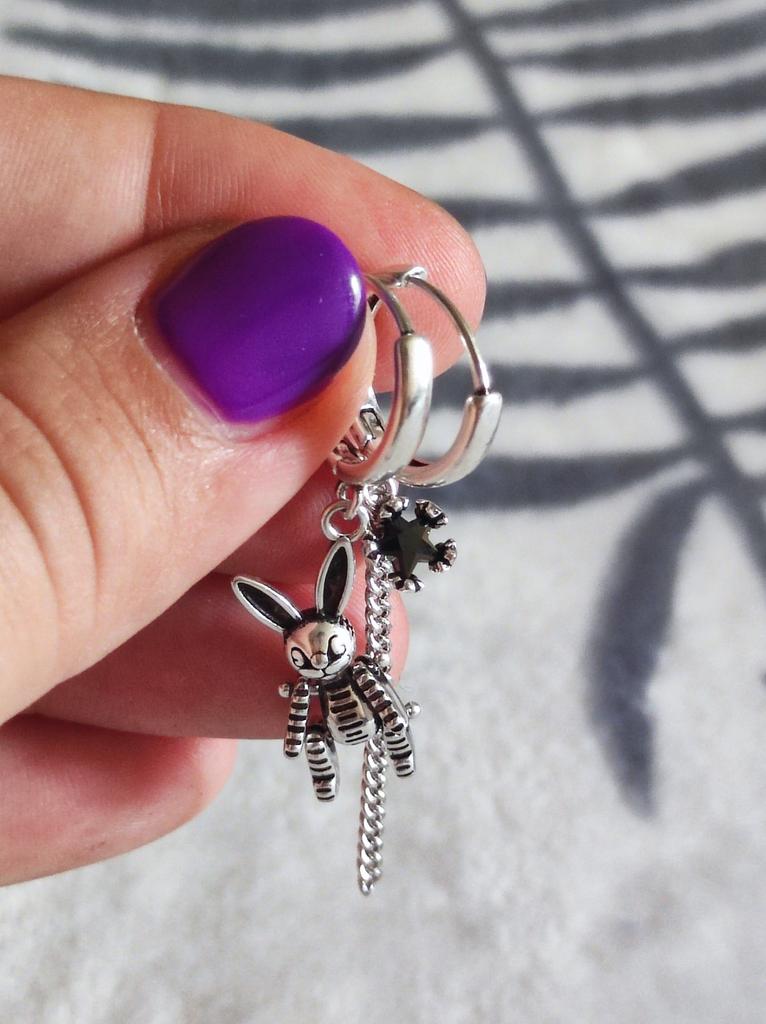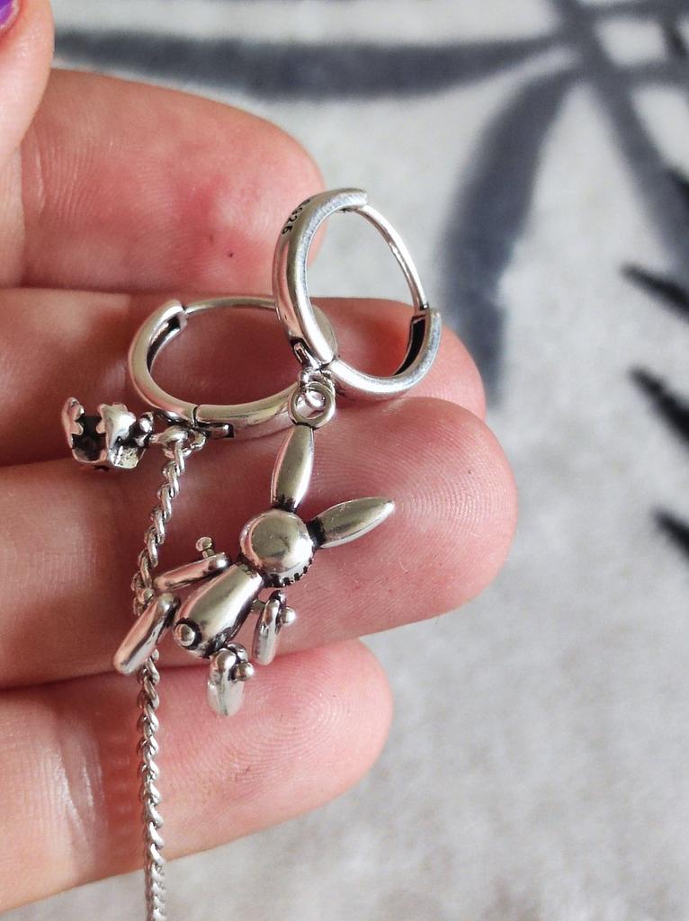Бунтарским духом и брутальными образами эстетика панка проложила себе дорогу на пьедестал трендов и конечно я не смогла пройти мимо этих ассиметричных серьг с милым веселым зайчиком😍 У зайчика ручки и ножки подвижные. Серьги не тяжелые, не большие -- смотрятся стильно и аккуратно. Сделаны качественно, хорошо отполированы, за одежду не цепляются. Хорошая и надёжная застёжка. Эти серьги также изготовлены из антиаллергенного материала, у продавца указано, что медь, но на кольцах указана проба 925 Диаметр кольца 15 мм Высота зайчика 25 мм Длина цепочки на второй серьге 40мм Вес обеих серьг вместе около 5 грамм Серьги приехали в отдельном пакетике с салфеткой для ухода.