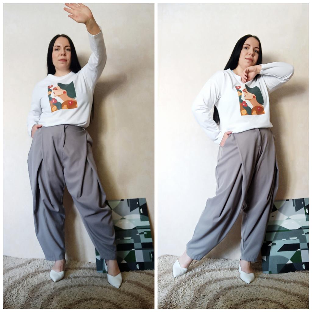 Брюки с интересным кроем Жду вас в телеграм, промокоды на хорошую скидку, интересные факты о товарах, свежая лотерея с призом смарт-часы 🔥 В телеграм канале, присоединяйтесь 🔻🔻🔻🔻🔻🔻🔻 @light_blog_joom Брюки с широкими складками - эта модель с большими защипами "в разные стороны" спереди. Отличный вариант для кэжуал или стрит стайл аутфита. В общем для комфортного, непринуждённого повседневного стиля и серьёзности делового. Такие брюки придают всему образу неординарности. Сочетаются с футболкой, лонгсливом, рубашкой. На мне два разных лонгслива (хлопковые кофточки) с joom ⬇️ Ссылки у меня в телеграм, набирайте в поисковике 🔍 light_blog_joom Так что для полезности, ещё больше вариантов сочетаний с ссылками опубликовала в своём телеграм канале Верх к такими брюкам рекомендую простого фасона. А обувь - от спортивной до каблуков. Мои замеры брюк 📏 Ширина по поясу 43 см (обхват 86 см); Высота в проёме 41 см (высокая посадка); Длинна брюк 98 см; Ширина по бёдрам 56 см (не с развернутыми складками); Ширина колошины 33 см (без развёрнутых складок); К низу колошины заужены, ширина 19 см. На свои объёмы: талия 88 см, бёдра 109 см, рост 158 см, по размерной сетке продавца, брала размер М По талии мне подошли идеально по бёдрам немного великоваты. Большой размерный ряд для плюс сайз. Цвет серый, материал полиэстер средней толщины. Есть два внутренних боковых кармана, хлястики для ремня. Бирки с указанием состава ткани и рекомендациями по уходу за изделием, пошив фабричный. Брюками довольна, именно такие и хотела - интересный крой и качество 👍 Если нравятся подобные вещи, берите, они супер! Рада быть полезной И спасибо за ваши ♥️