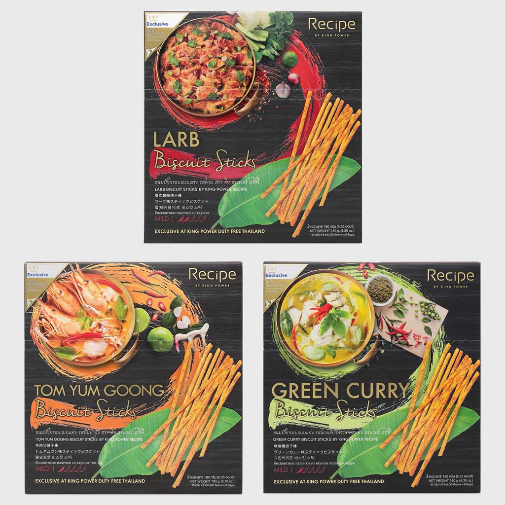 Рецепт Бисквитные палочки Larb & Tom Yum Goong & Green Curry от King Powder 180 г x 3 шт - Thai Snack