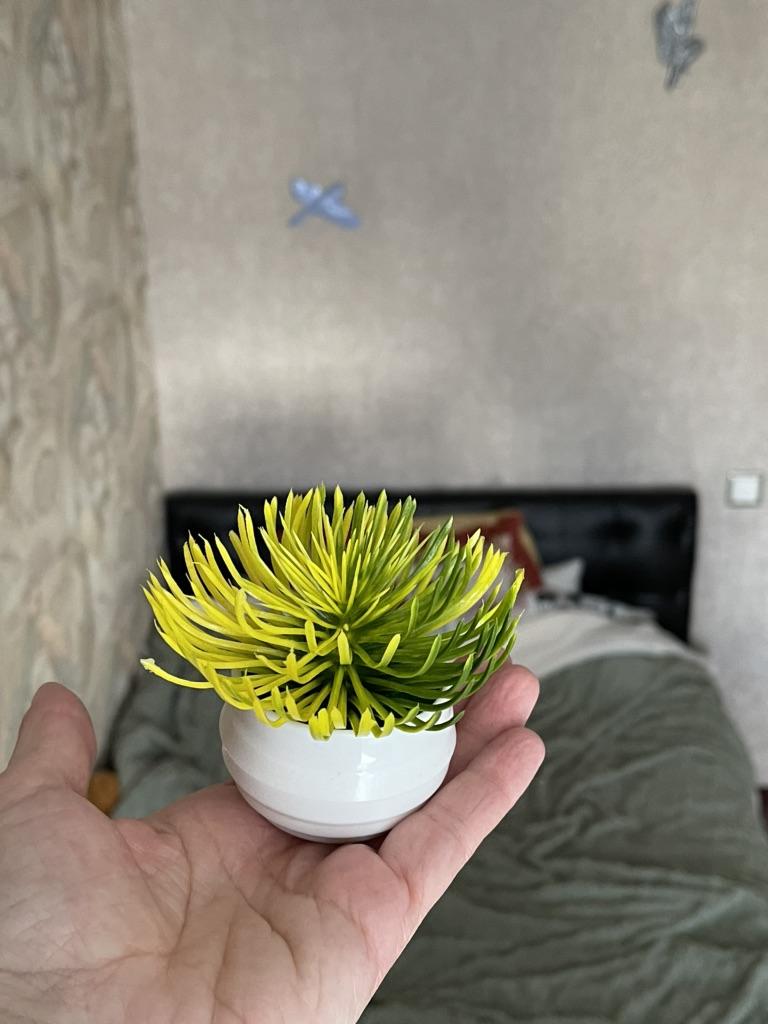 Горшочек не плохой , но ооочень маленький , за эти деньги не купила бы в магазине ❌ ну а по качеству не плохо , яркий , не поломан , немного были смяты листочки , горячий фен это исправил