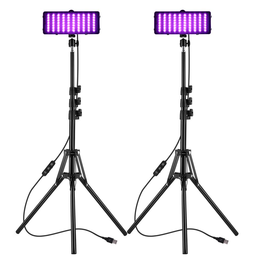 Комплект RGB-видеолайта: Включает в себя 2 * RGB-лампы, 2 * 160 см металлические световые подставки и 2 * металлические шариковые головки, подходящие для влога, прямой трансляции, онлайн-игр, онлайн-образования, портретной и продуктовой фотографии и т. Д.
