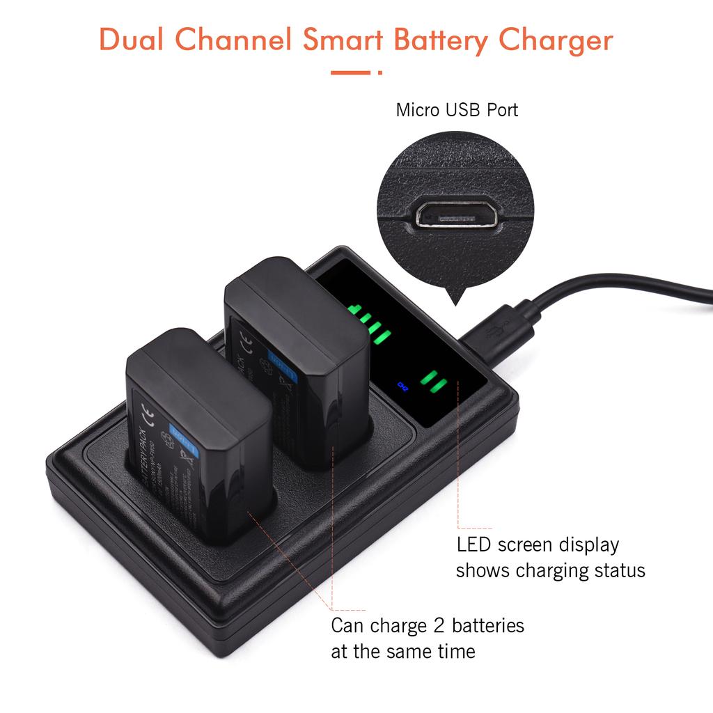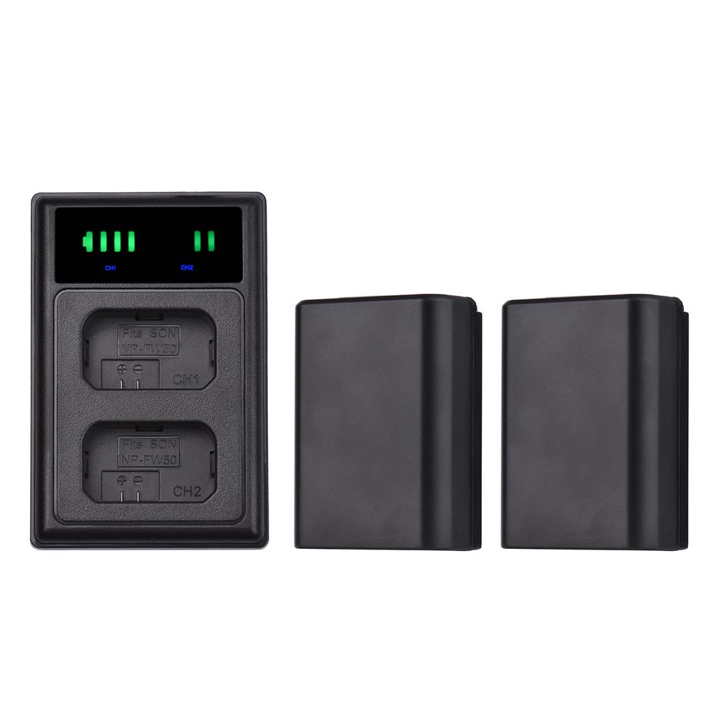 Andoer NP-FW50 USB Intelligent Charger & Battery Kit 1PCS Dual Channels Camera Battery Charger +