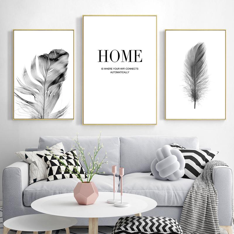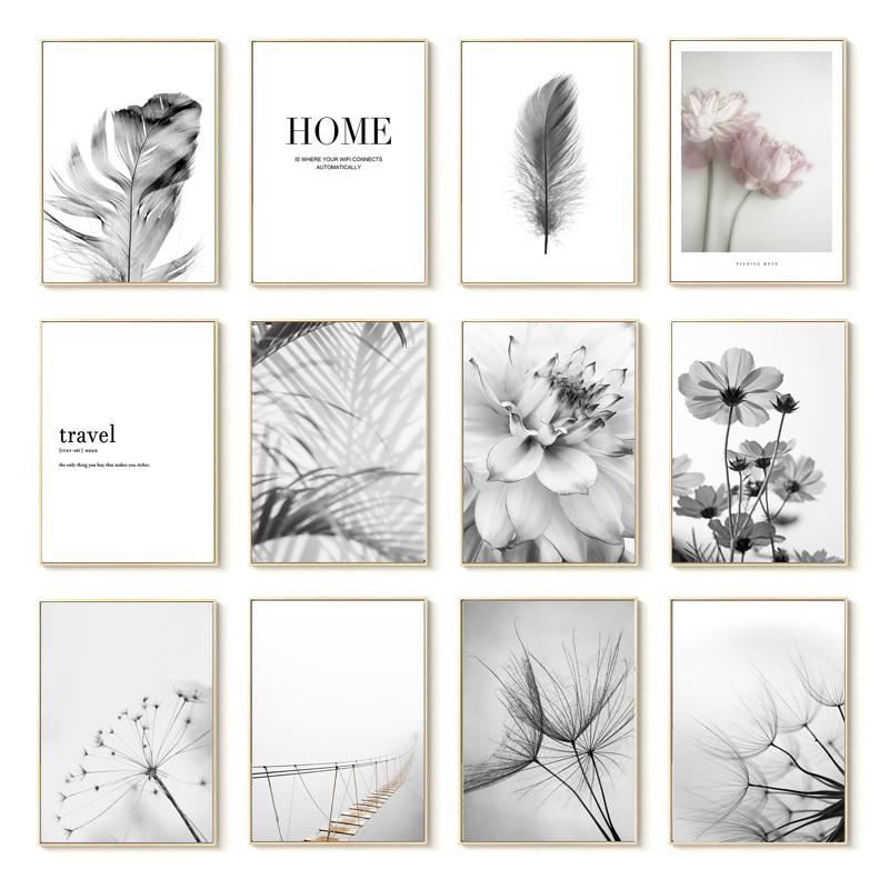 Черно-белые цветочные постеры с принтом, свежие настенные художественные картины с перьями одуванчика, холст, картина, украшение для гостиной, настенный декор без рамки