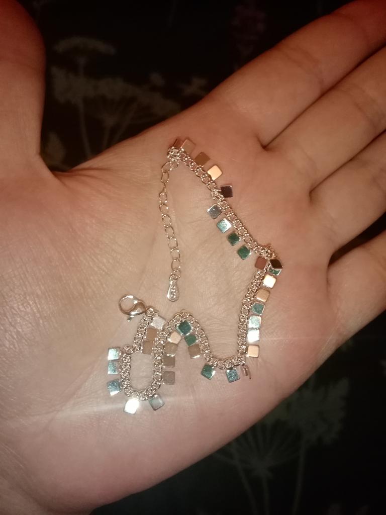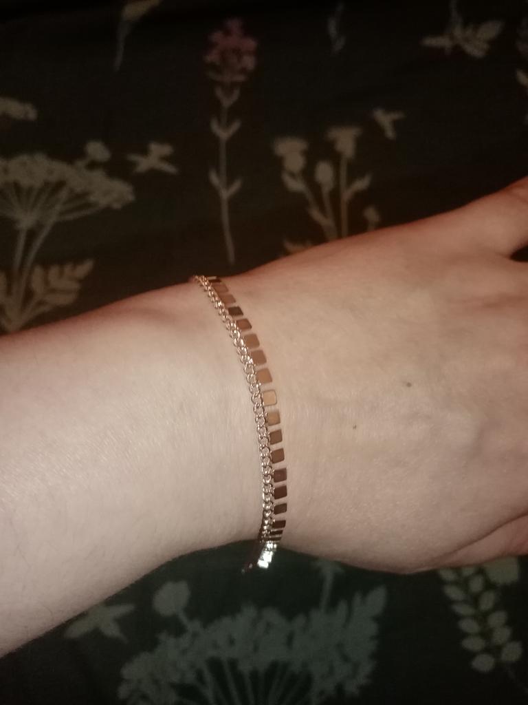 Товар пришёл хорошо упакованный и без брака. Заказала 02.02.2023, пришёл заказ 12.03.2023. Очень довольна заказом! 🥰 Длина браслета 16 см + 4 см доп. Да, маленький, но мне подошёл) 😉😁 На руке браслет смотрится очень нежно и аккуратно))) 👍 Лёгкий браслет! 🥰 Замочек сделан добротно, все крепления надёжно припаины. Даже стоит проба) 😁. Качественно сделана БИЖУТЕРИЯ. Выглядит браслет вполне как серебро. Как будет в долгой носке не знаю, но обязательно потом дополню отзыв. Брала за 181 руб, за такую цену вообще отлично! И не жалко если что) 😉