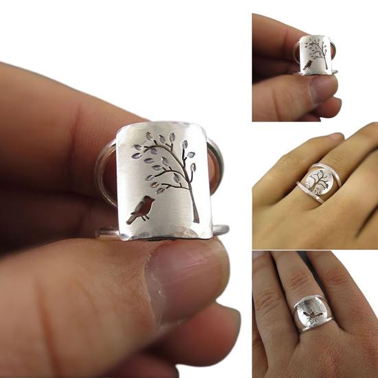Ретро женское кольцо очень стильное и уникальное благодаря своему полому дереву, пчеле и птице резному рисунку.