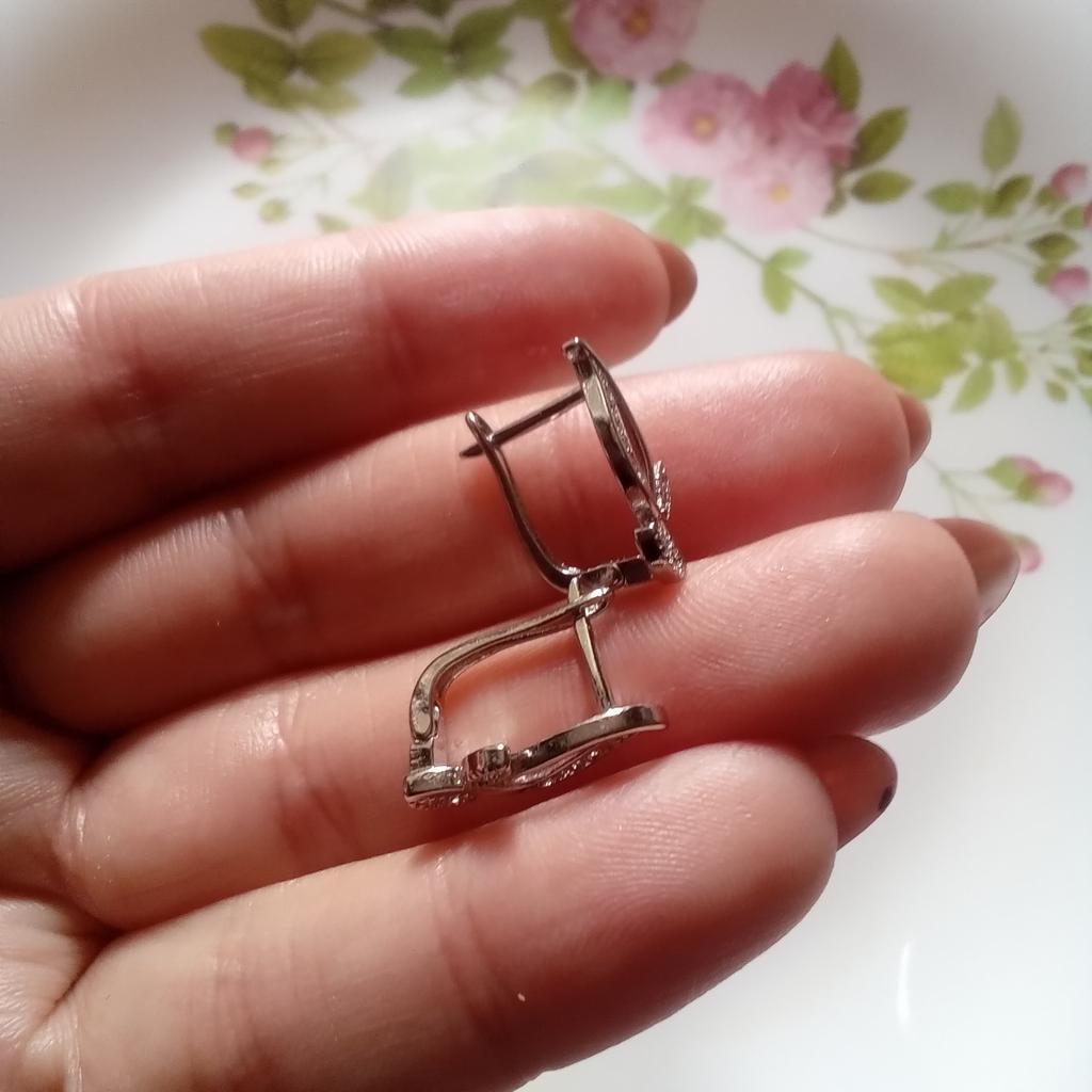 Очень милые, красивые, миниатюрные серьги!👌🤗 Выполнены из меди в виде лепесточка..☝️ Небольшие, 1,5 см.☝️ Застёжка английская:удобная, надёжная. ☝️ Серьги лёгкие, невесомые, комфортные. 👍💯 У меня серьги серебряные. 💥 Качество отличное:камушки на месте, вклеены прочно;застёжка работает хорошо;дефектов не имеют. 👍💯 Рекомендую к покупке.👌😘