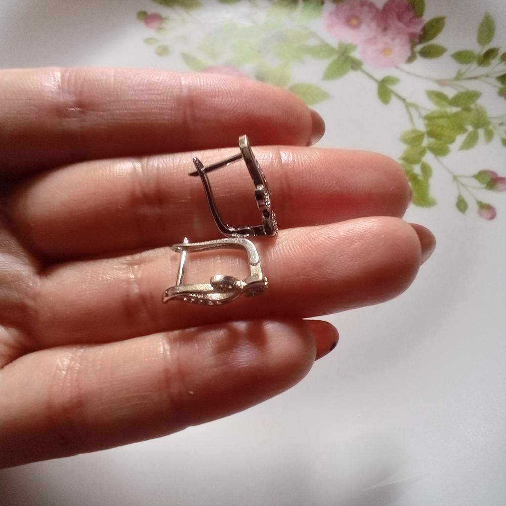 Заказ получила в сборной посылке. Абсолютный рекорд по времени доставки, чуть больше месяца, обычно посылки на Ямал шли три месяца. Серёжки заказывала ранее, просто потеряла одну, слабые замки. В общем же, мне они очень нравятся. При постоянной носке вид они свой не теряют, всем вокруг кажется что серьги с белого золота 😉, что очень радует 🤣. По размерам они маленькие, как детские, но очень удобные и красивые. Рекомендую