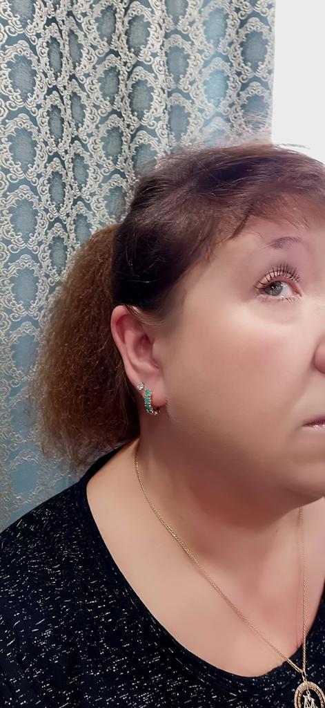Серёжки очень мне нравятся, я купила уже раньше голубые, и заказала зелёные. Но очень огорчилась, когда открыла коробочку, в которой они лежали, увидев, что они голубые. Только, потом, на другом освящении, была заметна , совсем небольшая разница в цвете камней(очень ждала зелёные). Качество +5, голубые носила, не снимая несколько дней, уши не болели, не краснели. Камушки красивые, переливаются своими гранями. Спасибо мастерам и продавцу.