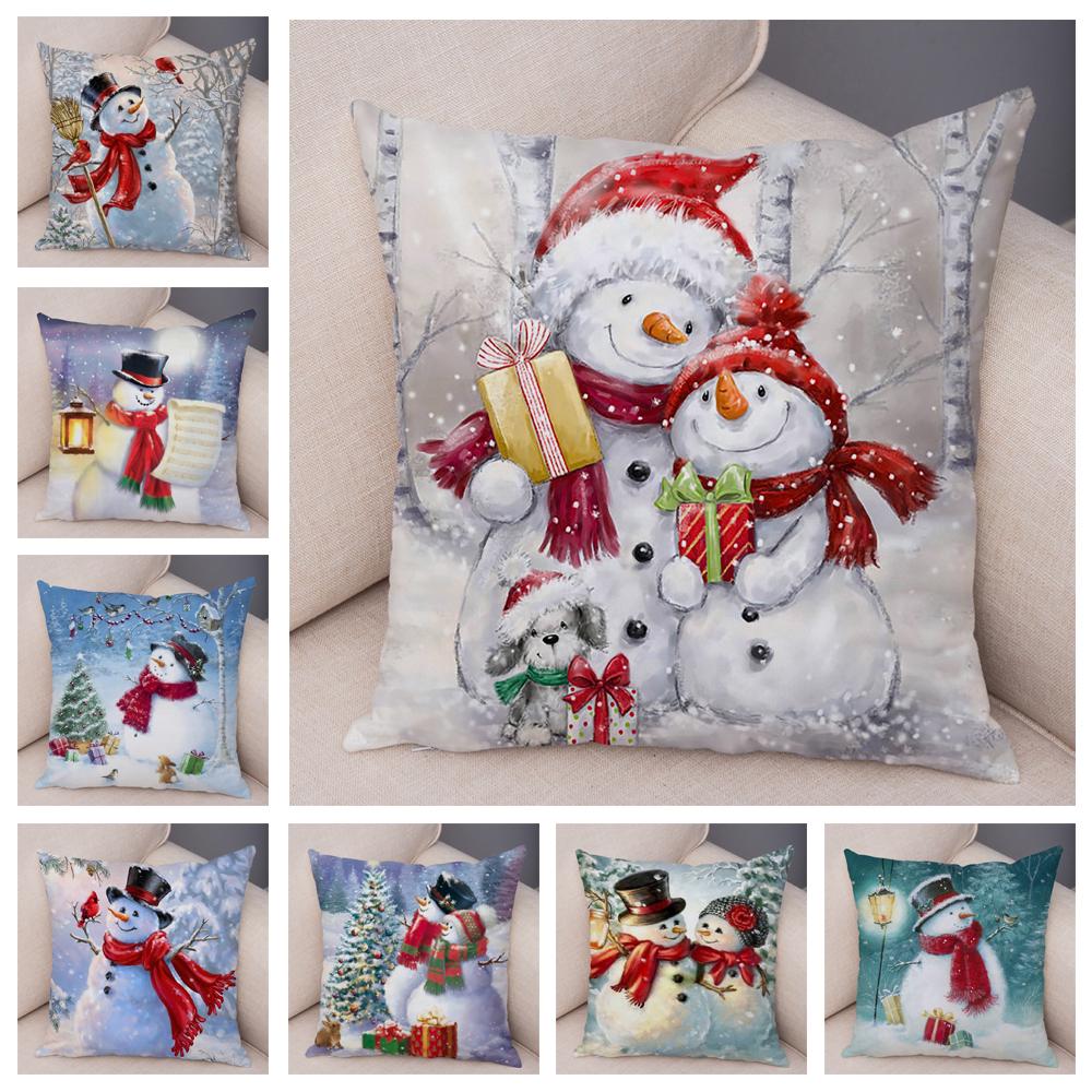 Милый мультяшный снеговик, декоративная рождественская наволочка, мягкая плюшевая наволочка для детской комнаты, диван-тележка