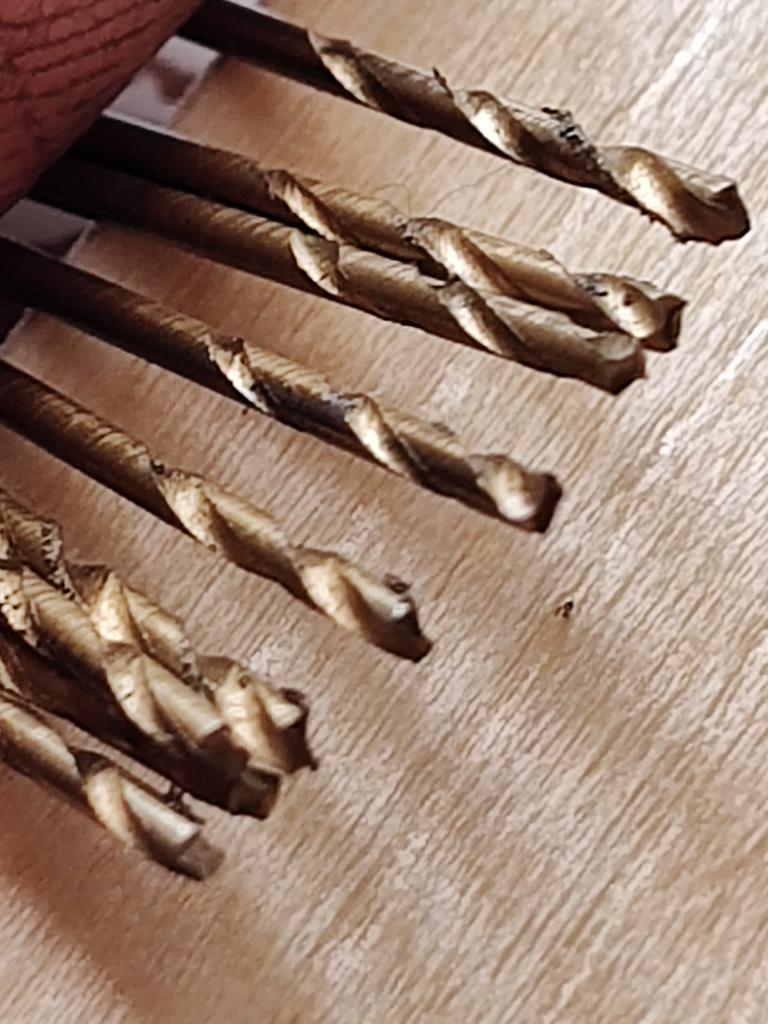 Сверла с виду нормальные, заточка не сильно важно, переточить придется по любому, вот размеры 1, 1.5, 2, 2.5 нормальные сверла замыкающие комплект должны были быть 3 мм. Однако как не мерил, все десять уверенно показывают 3.1 мм. Нужно будет найти еще вариант, где точнее размеры.