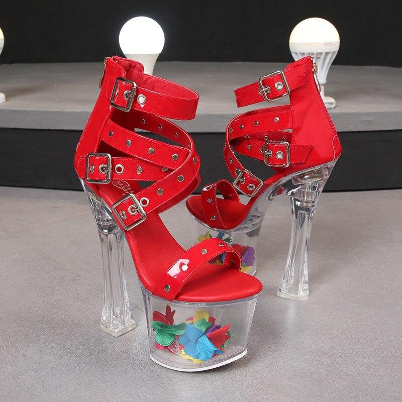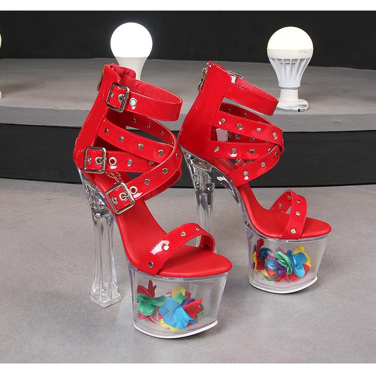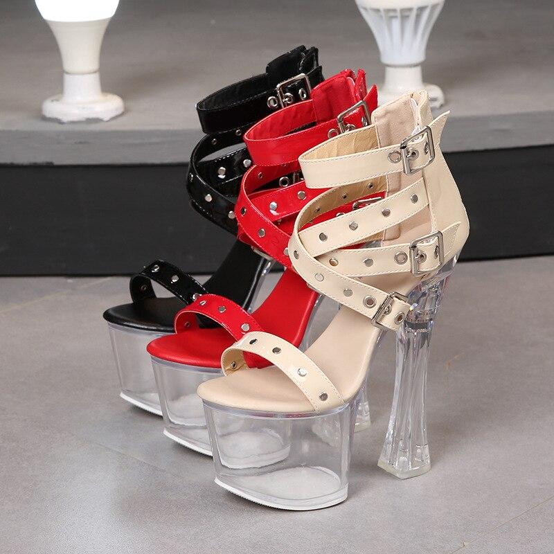 Модельные сандалии с заклепками, быстрая продажа, прозрачные туфли на высоком каблуке