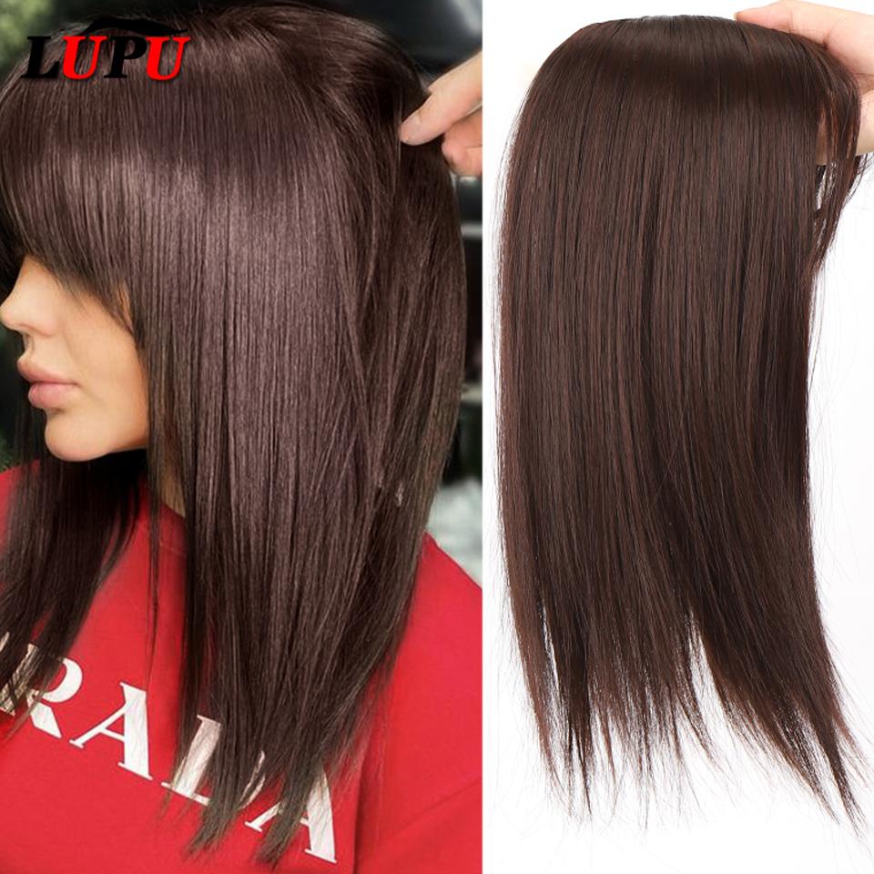 LUPU Короткие прямые натуральные синтетические накладные волосы коричневого и черного цвета для женщин с челкой, удлинители на клипсе, высокотемпературное волокно — купить товар онлайн с бесплатной доставкой до всему миру!
