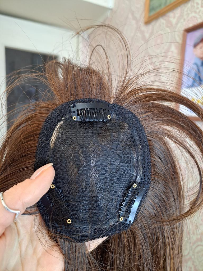 Шиньон-накладка🤎 Это для создания густоты волос. Такая накладка идёт с челкой,можно ещё создать чёлку,если у вас её нет😉 Товар отличного качества. Шиньон держится на трех заколках. Волосы выглядят натурально-ухоженными👌 У меня оттенок #2/30. 35 см длина. Если будет короче,то волосы будут чубчиком с заметным порожком на голове😬 Товар и продавца рекомендую. Посылка пришла до Тулы за месяц. Отслеживалась до конца. Упакована в свой пакет и почтовый. Если хотите читать такие же интересные отзывы о взрослых и детских товарах, подписывайтесь на меня, я буду рада 😉