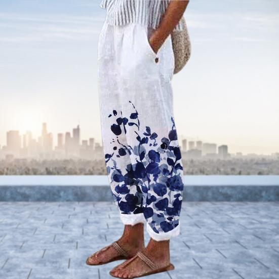 Pockets Bottoms Attractive Floral Print Simple White Pants Women Trousers — купить товар онлайн с бесплатной доставкой до всему миру!