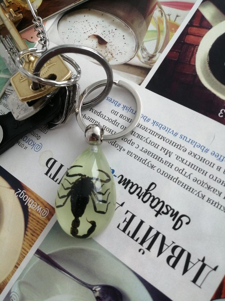 Отличный брелок. Беру уже во второй раз. Если хотите брелок именно со скорпионом, то выбирайте под номером 1. Под другими номерами другие насекомые (всегда читайте подробное описание любого товара и сравнивайте его с отзывами покупателей). Так сможете избежать ошибочного выбора. Товар и продавца рекомендую. Всем приятных покупок и летнего отдыха!