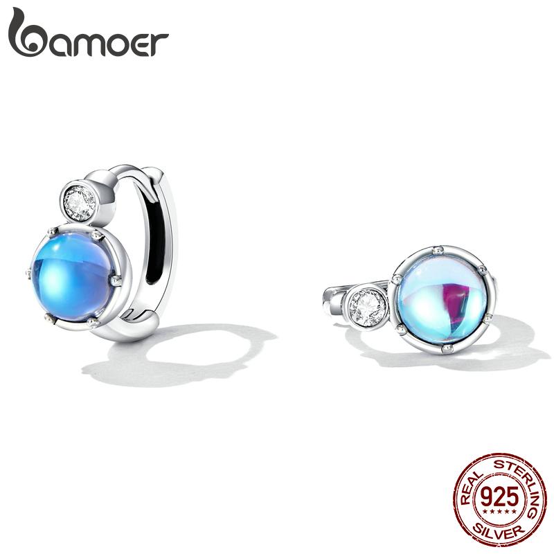 BAMOER, простые блестящие пряжки для ушей из стерлингового серебра 925 пробы для женщин, серебряные серьги с блестящим камнем, ювелирные изделия, свадебный подарок