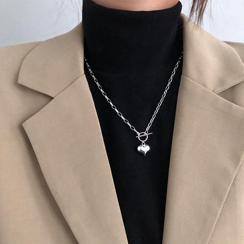 ANENJERY Женские модные ювелирные изделия, простое ожерелье с подвеской в форме сердца любви, ожерелье с застежкой-цепочкой для женщин, ювелирные изделия, подарки S-N612