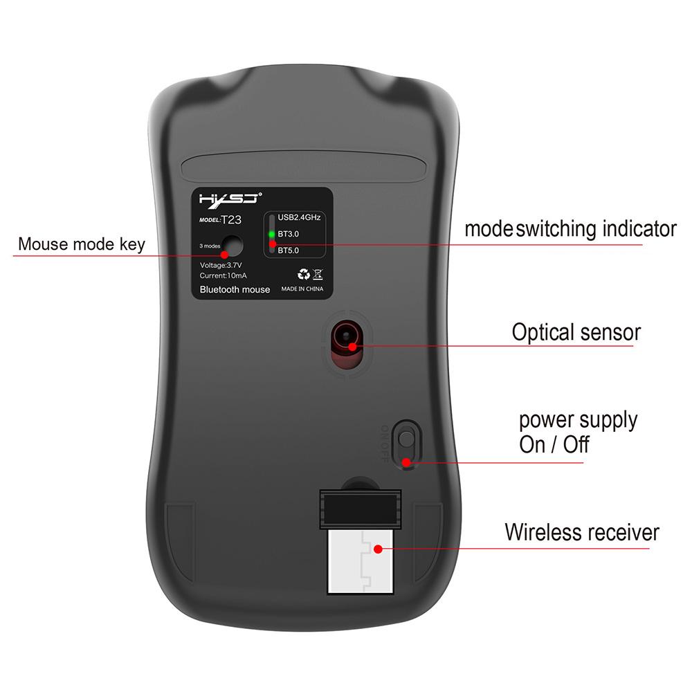 HXSJ Беспроводная мышь T23 2,4G+BT3.0+BT5.0 3-режимная эргономичная мышь Встроенная перезаряжаемая 400 мАч