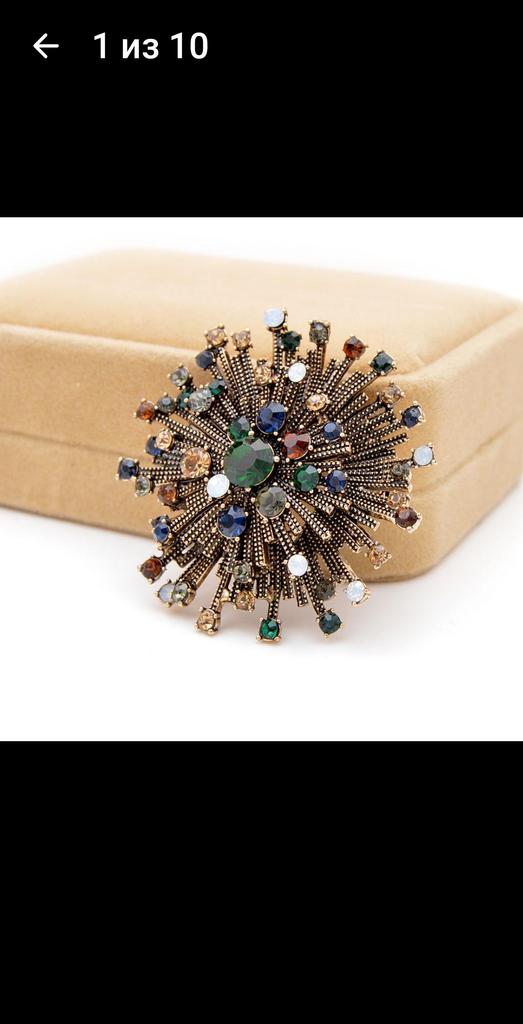 ✈️ брошь, довольно таки симпатичная, но не в той цветовой гамме, которую я ожидала 😒 Первые два фото, что заказала, последующие, что получила 😏 в полученной броши совершенно отсутствуют "камни" оранжево/красные, для меня это было важно, поскольку хотела составить комплект серьги + брошь/кулон.... в моей броши в основном только бело/синие "камни" Очень обидно, что продавец так невнимателен к покупателям.....