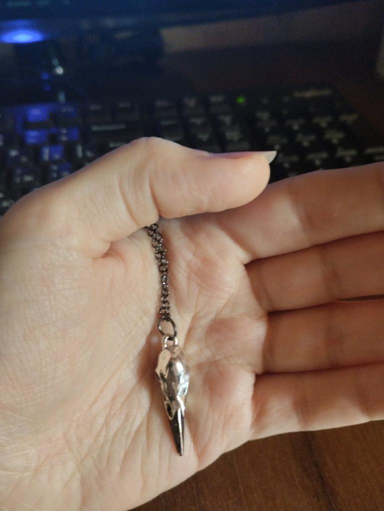 Хорошая подвеска, но кончик не чёрный приехал, а целиком металлик, и цепочка коротенькая, нужно будет на длинную переставить, родная длина по ямочку на ключицах.