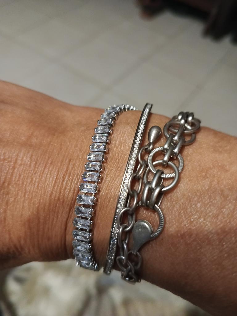 Браслет красивый ,камушки сверкают. Брала к серебряному комплекту такой же формы. все вместе смотрится хорошо, как один комплект. Пробу не нашла, надеюсь не сотрется ,до медного сплава. Спасибо продавцу. 5 звезд ставлю авансом, посмотрим как будет в носке.