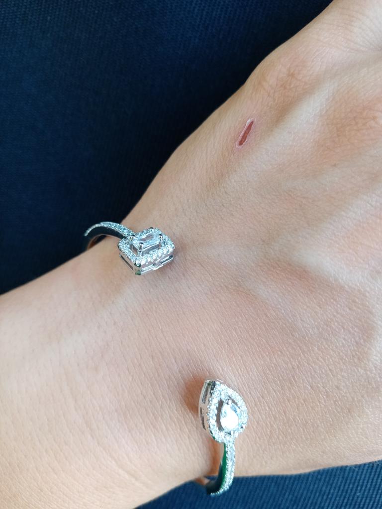 Чтоб на руку надеть нужно самой разширять его, и неизвестно сколько он таких разширений выдержит, прежде чем сломаться. Лёгкий настолько, что нет сомнений что это не серебро. Да, проба стоит, но это, скорее всего, означает ПОКРЫТИЕ серебром, но никак не ИЗ серебра. Красивый. Упаковка и доставка на 5+. Обмануло ожидания, это просто бижутерия с покрытием, и очень сильно царапает запястье при надевании.