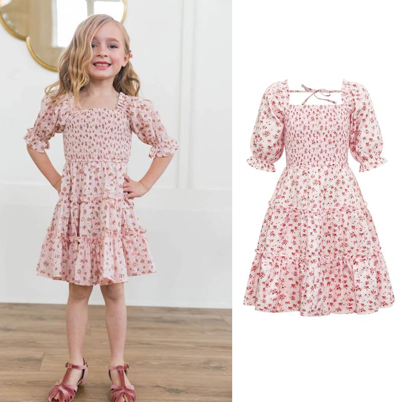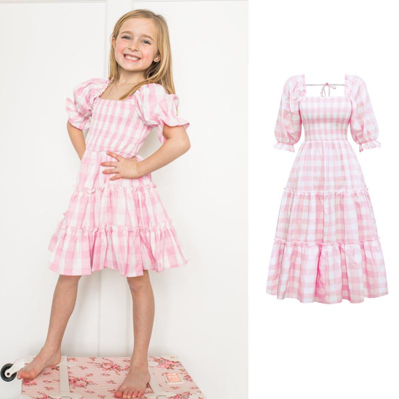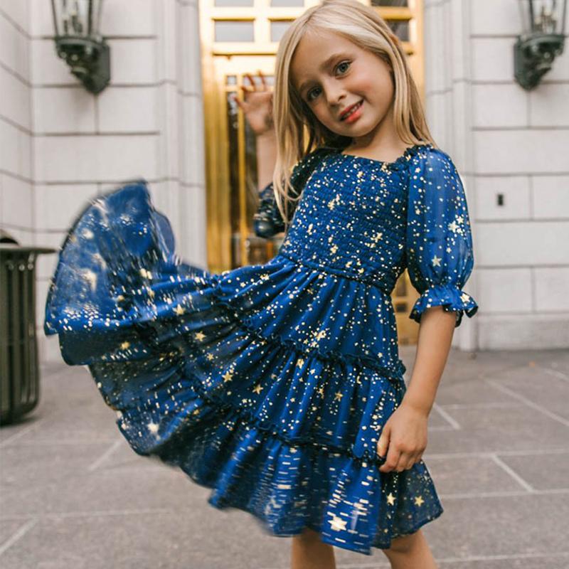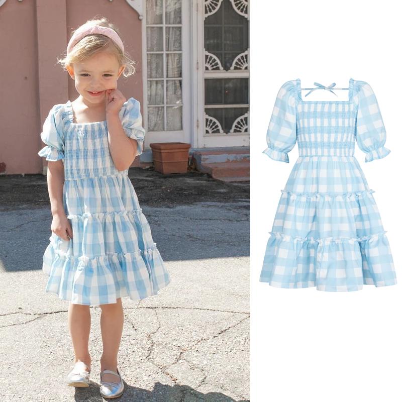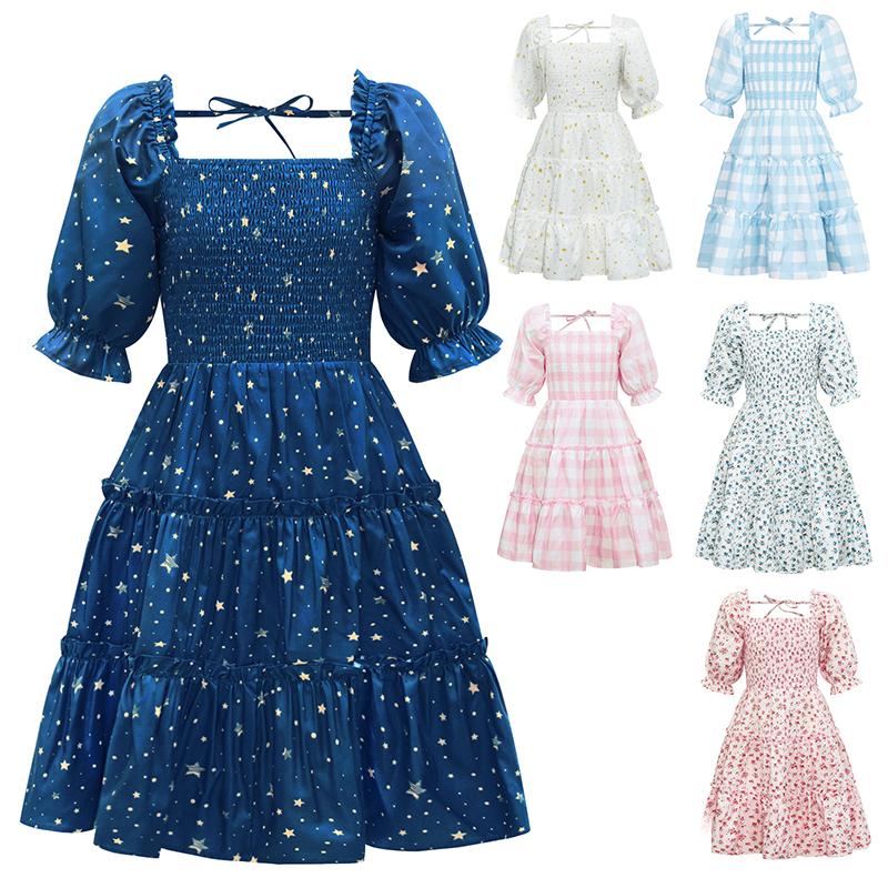 Летнее платье со сборками для девочек, платье с блестками и рюшами, с короткими рукавами, цветочное платье для детей-подростков, новые клетчатые шифоновые вечерние платья принцессы, костюм