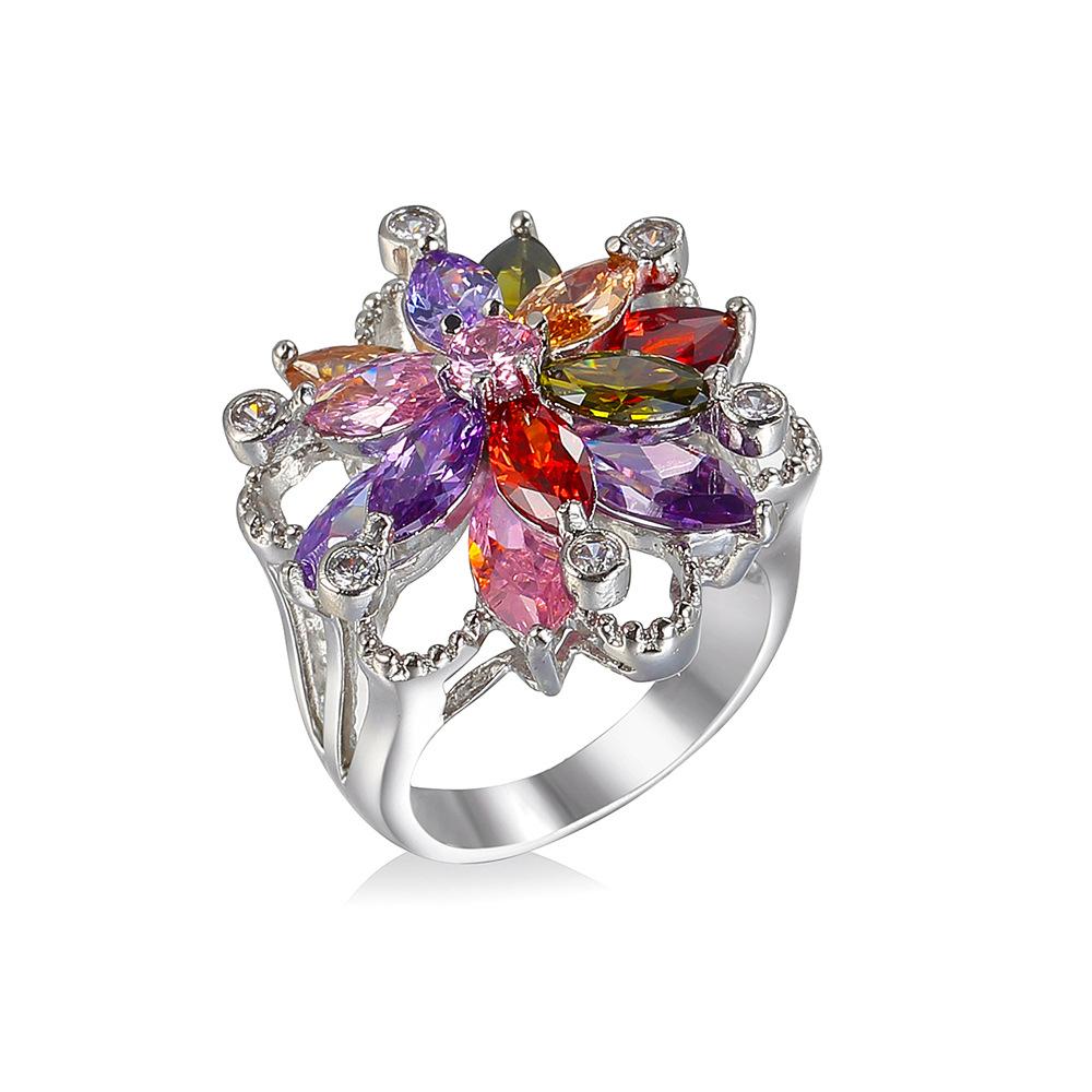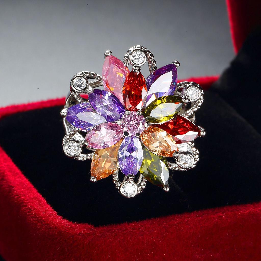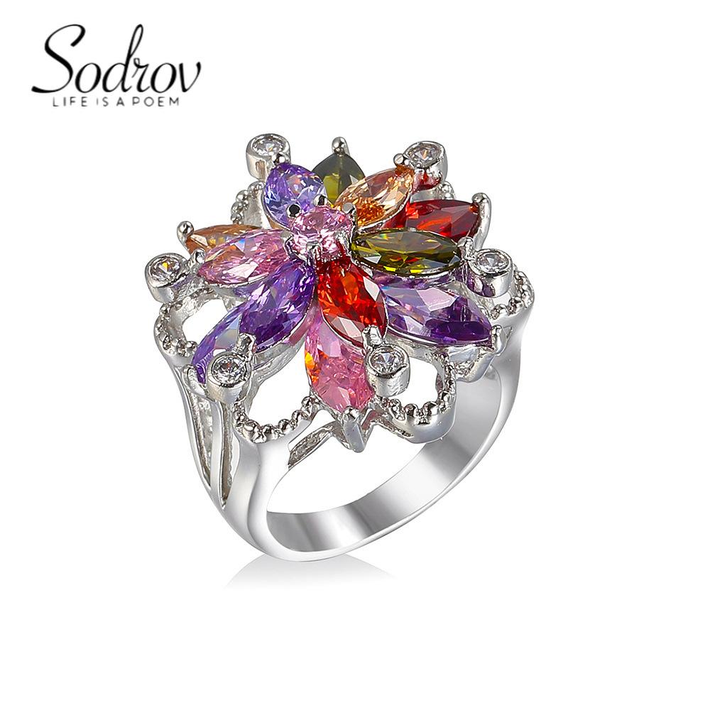 Ювелирные изделия SODROV с радужными кристаллами, цветные кольца с цветком циркона для женщин