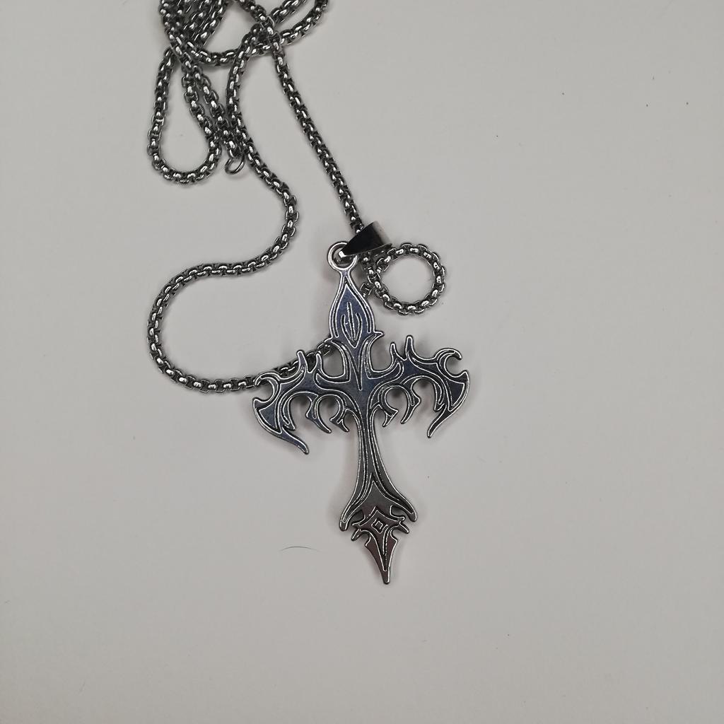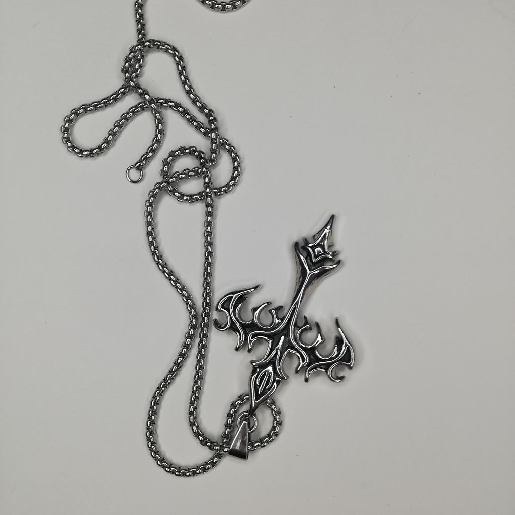 Готический кулон с пламенным крестом, ожерелье, мужская цепочка из нержавеющей стали 50 см, подарок в стиле панк на шею — купить товар онлайн с бесплатной доставкой по всему миру!